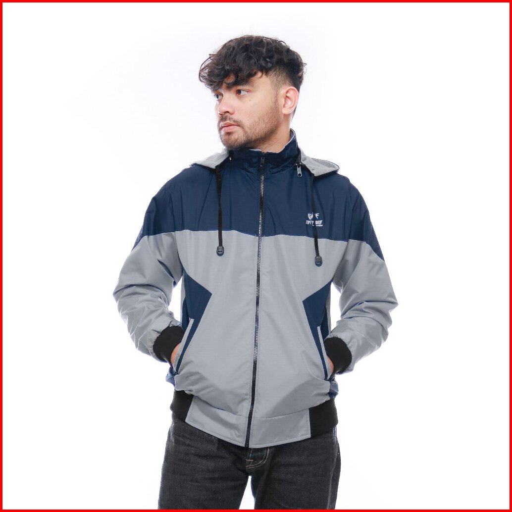 Jaket Bolak Balik Parasut Taslan Pria Dan Wanita Windbreaker Waterproof Terbaru Navy