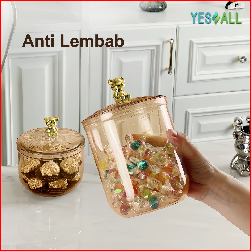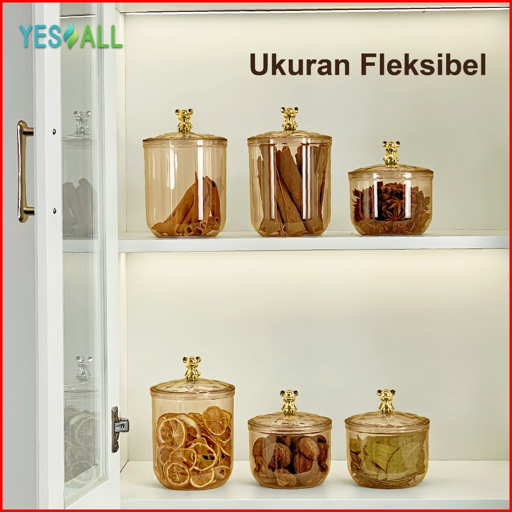 Yesall Toples Aesthetic Amber Beruang Bulat Tutup Rapat Kapasitas Besar Tempat Snack Kopi Bumbu