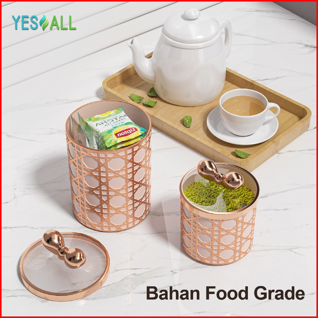Toples Aesthetic Mewah Rose Tempat Penyimpanan Serbaguna Untuk Snack Kopi Kosmetik Pink Transparent Jar