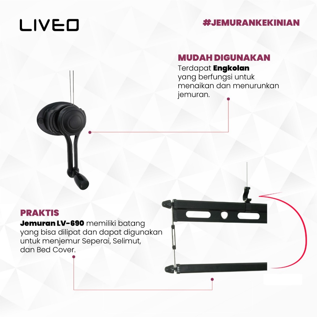 Jemuran Lifting Alumunium Liveo Lv-690 Plafon Langit-langit Jemur Baju