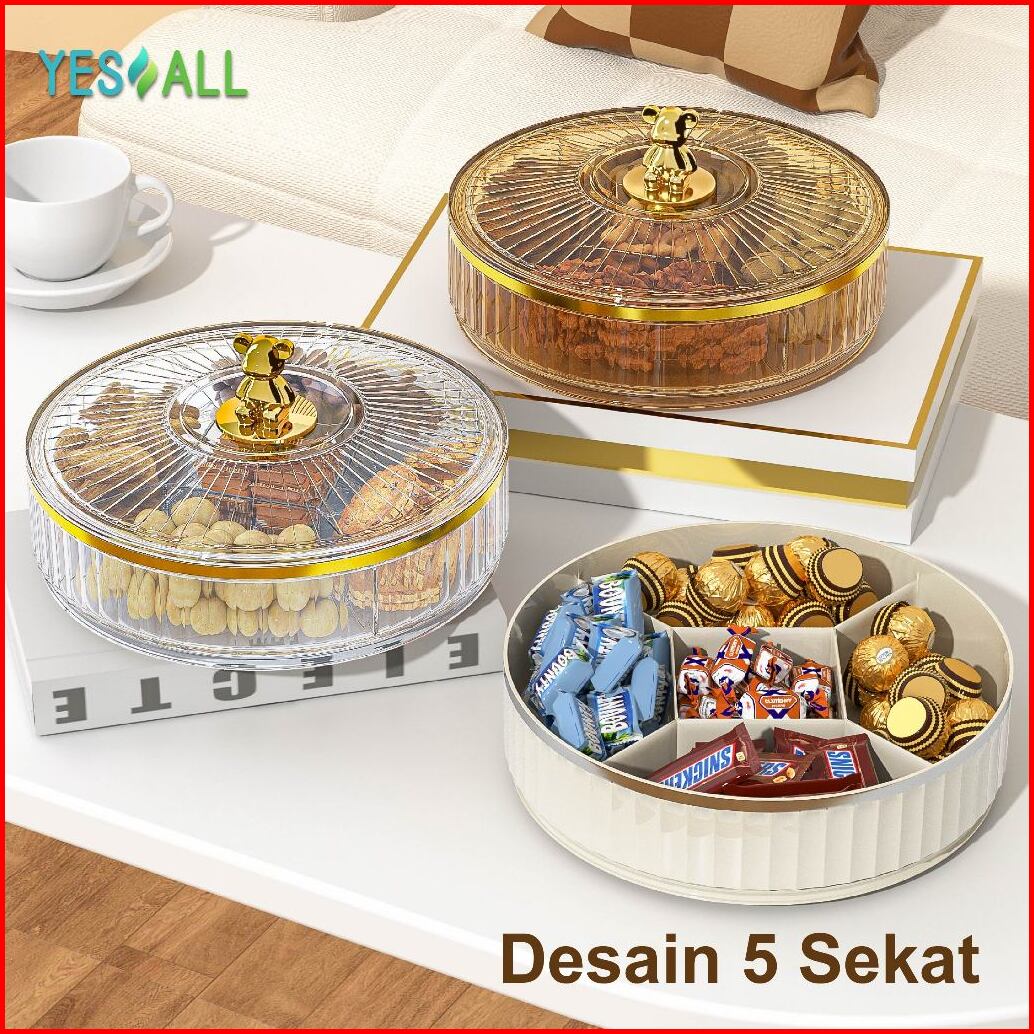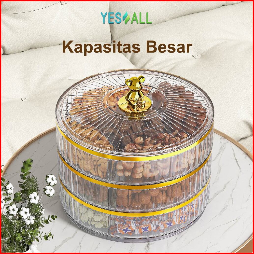 Yesall Toples Aesthetic Tingkat Beruang - Toples Lebaran Rak Putar Snack Cemilan Toples Kue Kering Tempat Makanan Kotak