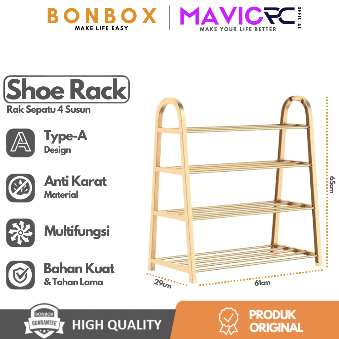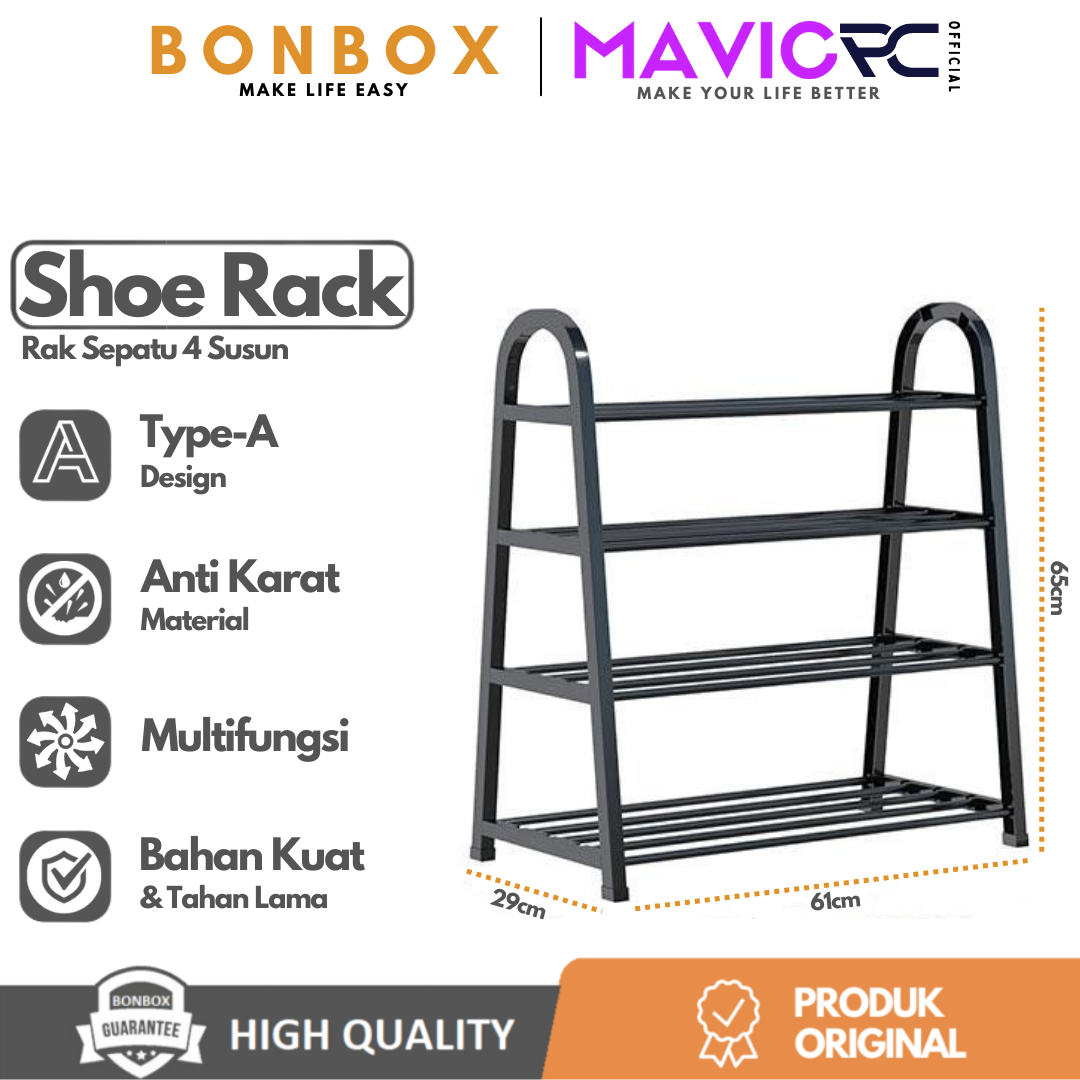 Rak Sepatu Bonbox Bfs701 4 Susun Baja Tipe A Kuat Tahan Lama Rumah