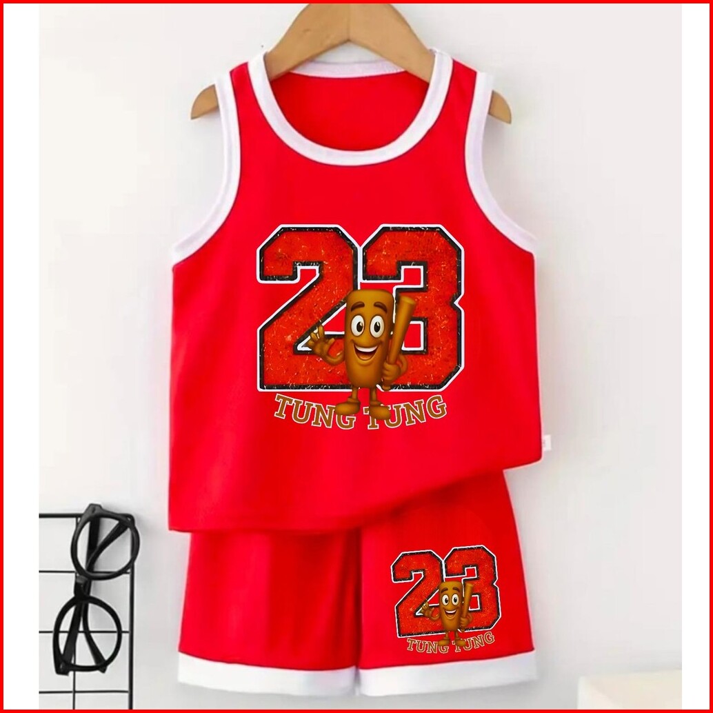 Setelan Singlet Tanpa Lengan Setelan Basket Anak Tung Tung Sahur Setelan Singlet Anomali Tung Tung Sahur Anak Laki-laki