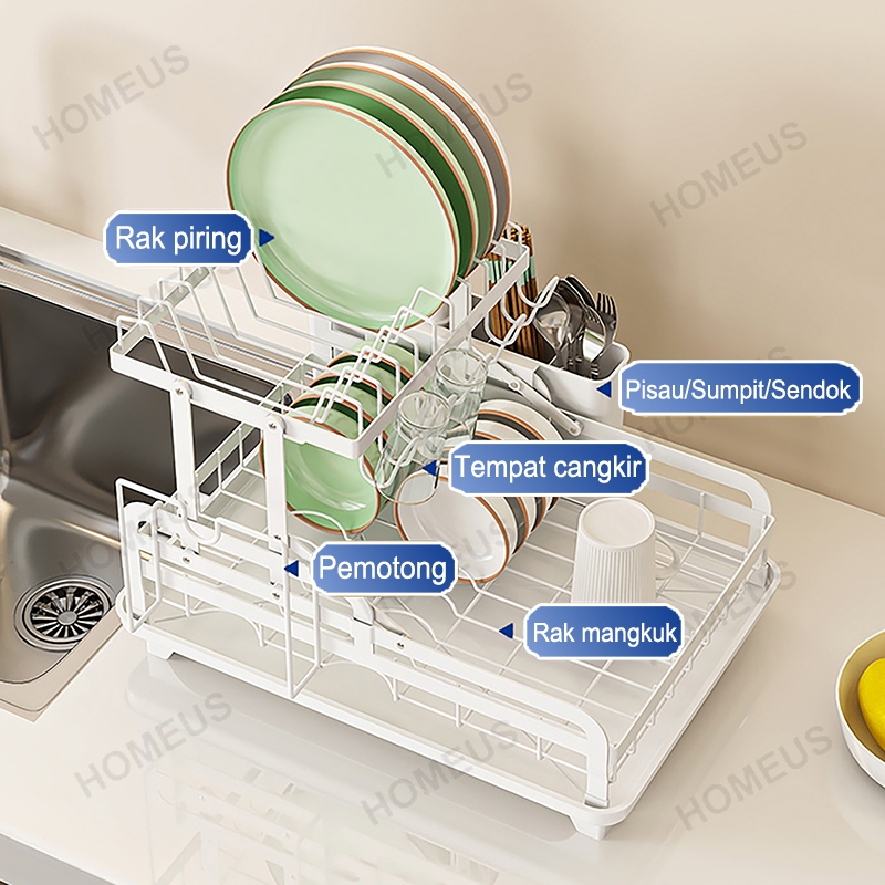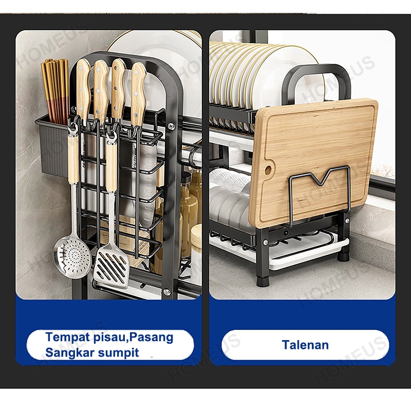 Rak Piring Cuci Penyimpanan Homeus Stainless Steel Muat Mangkuk Piring