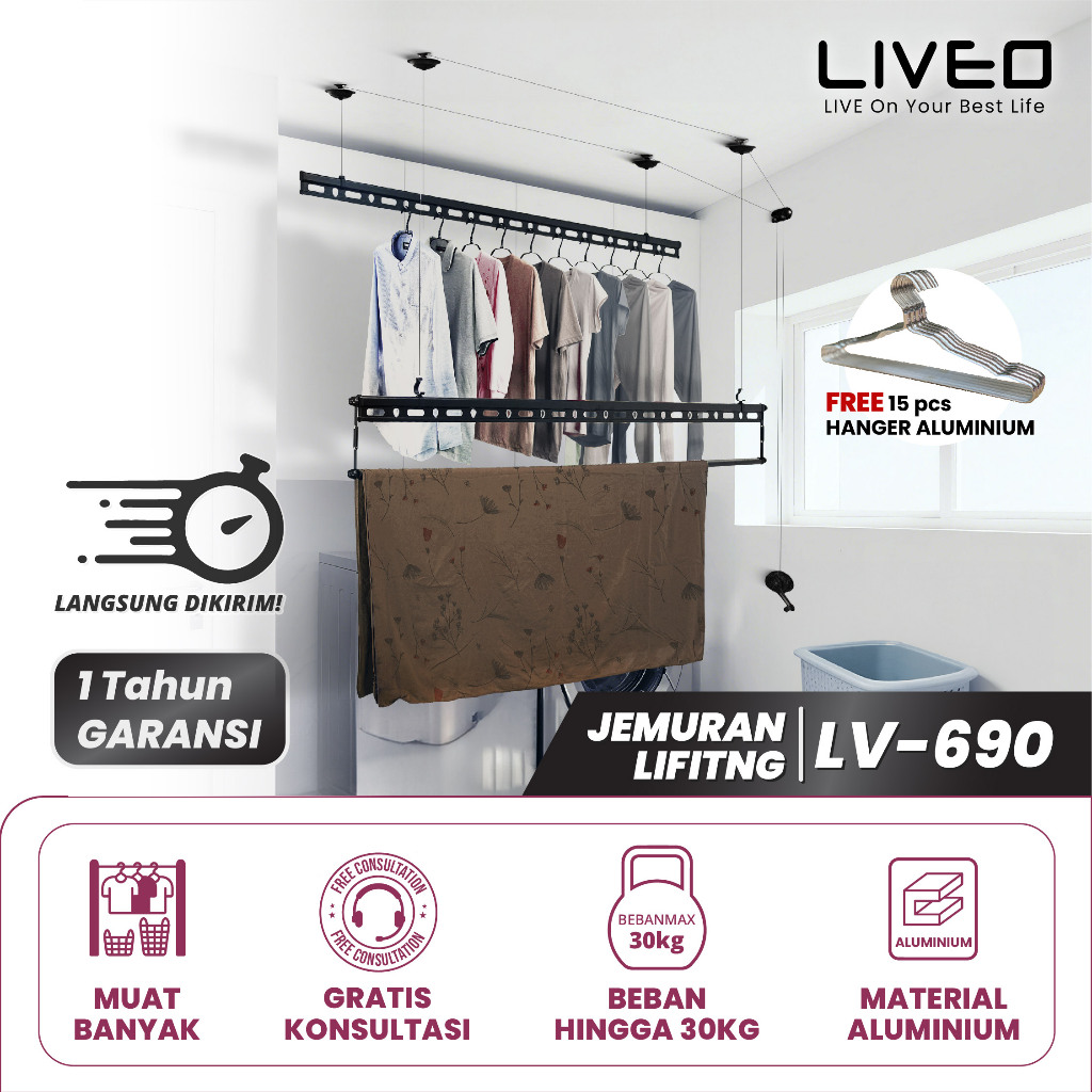 Jemuran Lifting Alumunium Liveo Lv-690b Plafon Langit-langit Jemur Baju