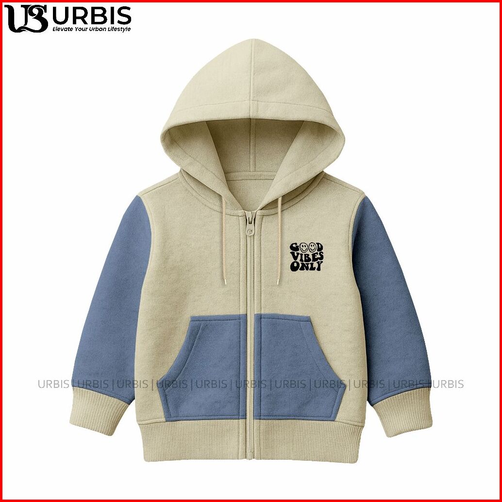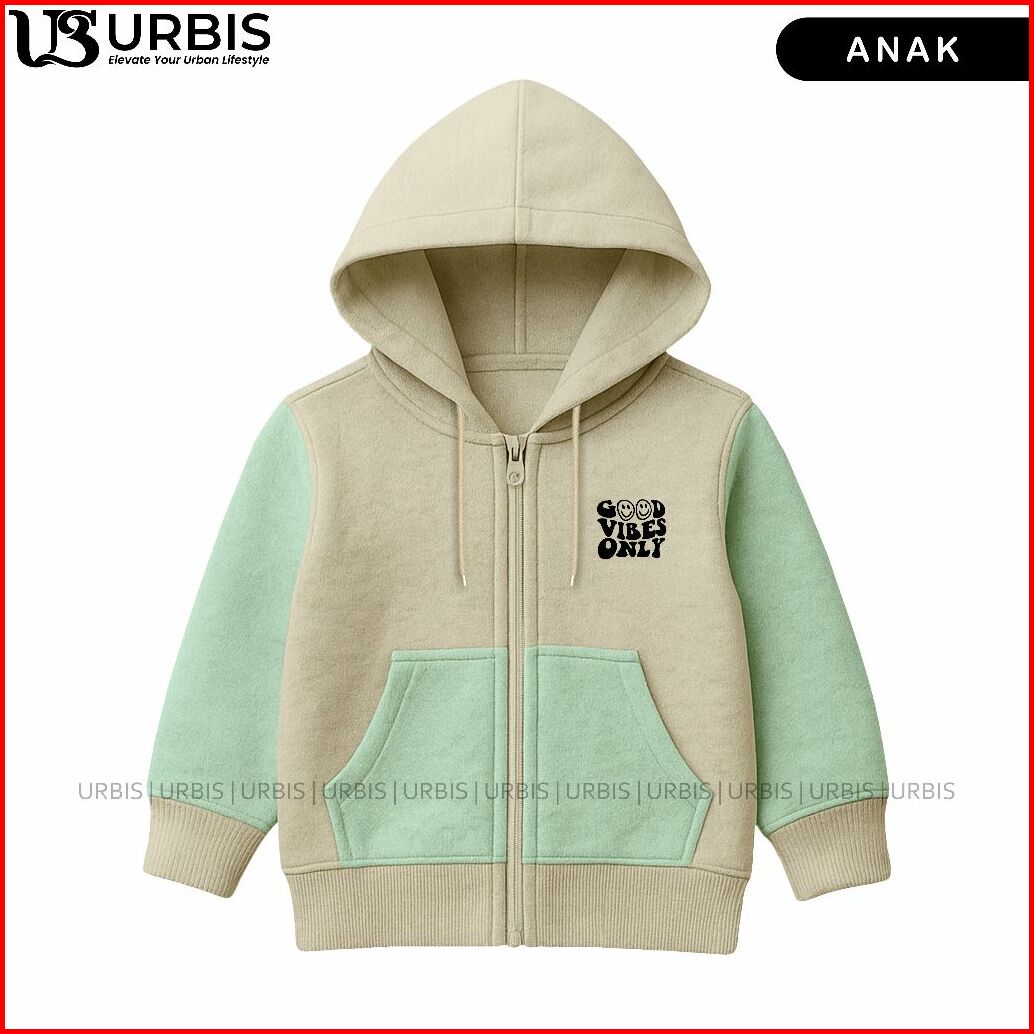 Urbis Jaket Zipper Anak Laki-laki Perempuan Kombinasi Usia 3-13 Tahun Good Vibes Only Fleece Tebal