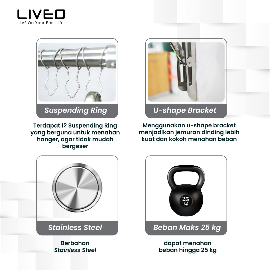 Jemuran Dinding Liveo Stainless Lv-399 Lipat Gantung Jemur Baju