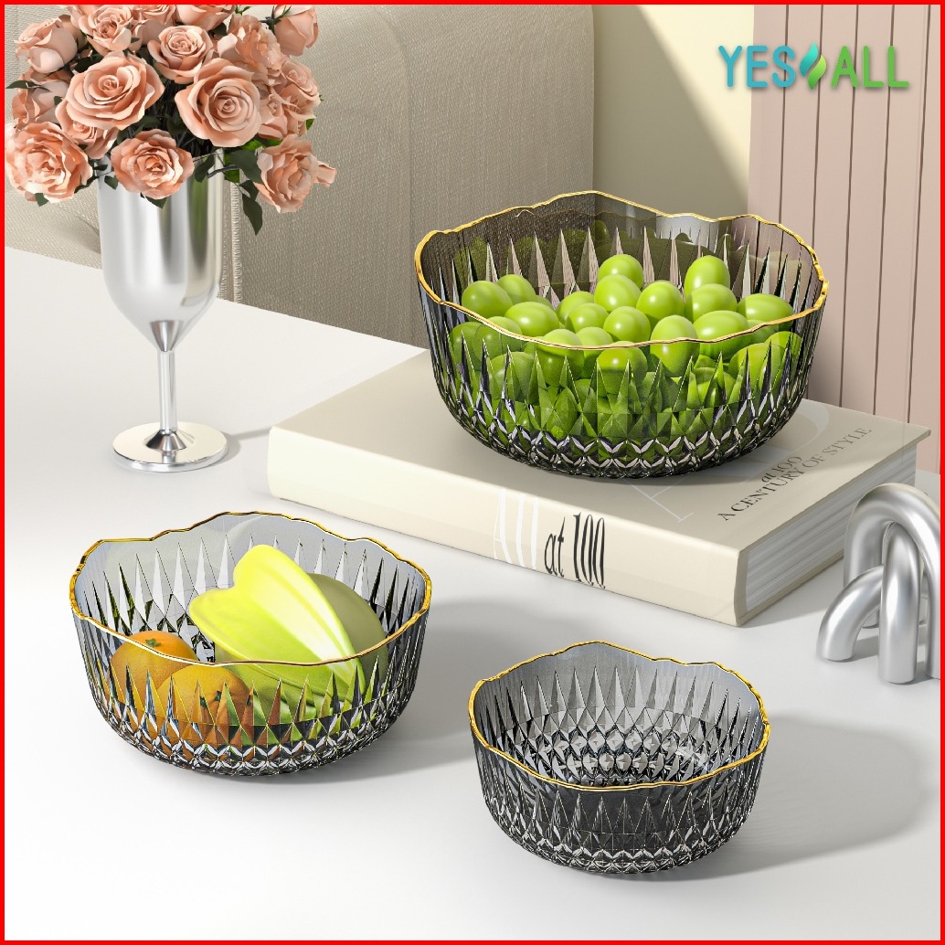 Yesall Mangkok Diamond Motif Ombak Transparan Aesthetic - Transparan Bowl List Transparent Mangkuk Salad Sayur List Mang