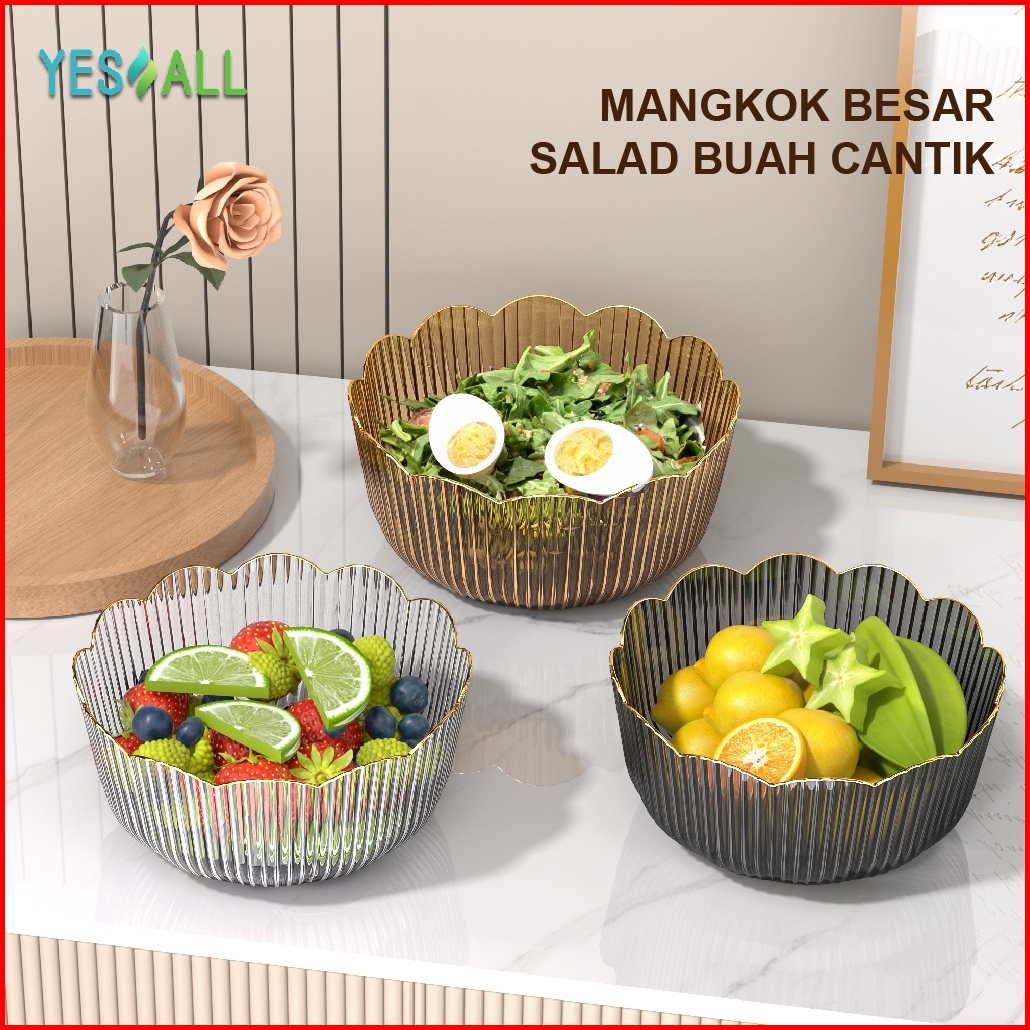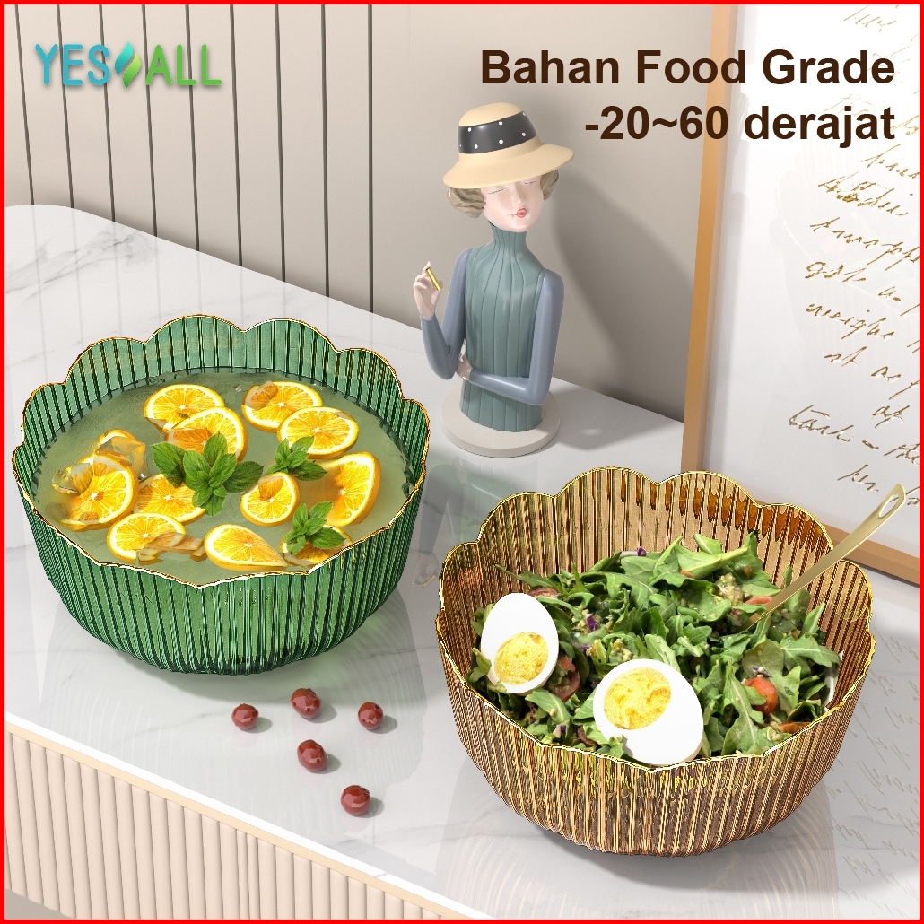 Yesall Luxury Transparent Salad Bowl With Rim - Mangkok Aesthetic Mangkok Plastik Bening Transparan List Unik Mangkuk Sn