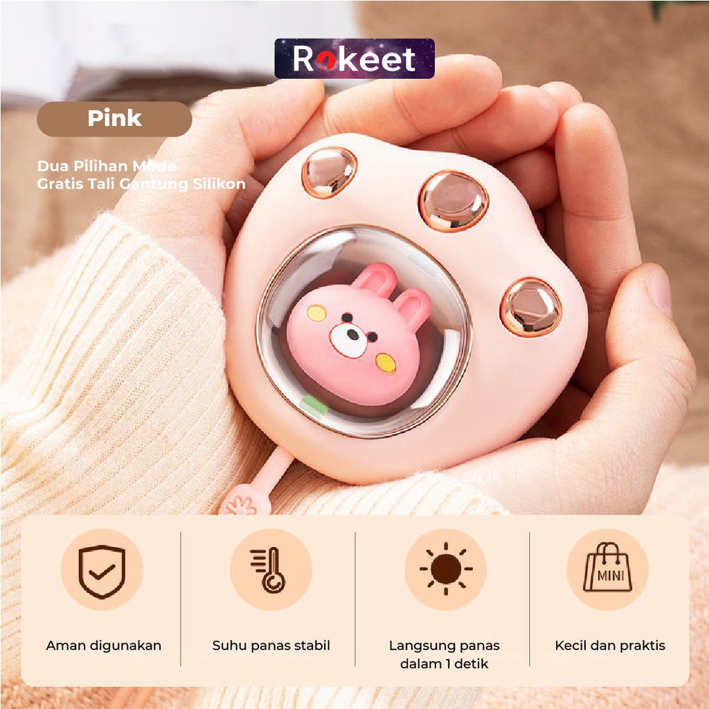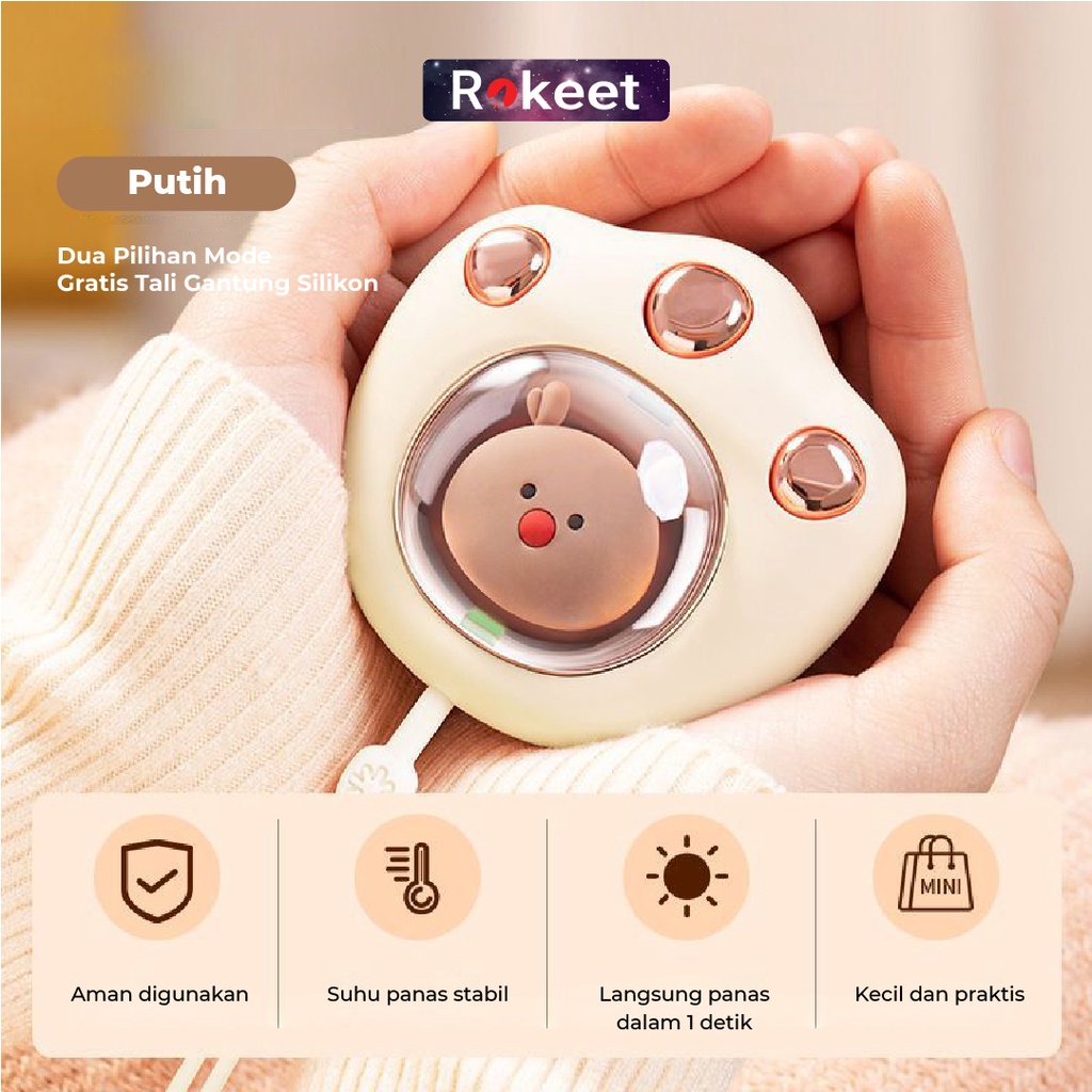 Hand Warmer Rokeet Mini, Usb Rechargeable Keram Perut, Penghangat
