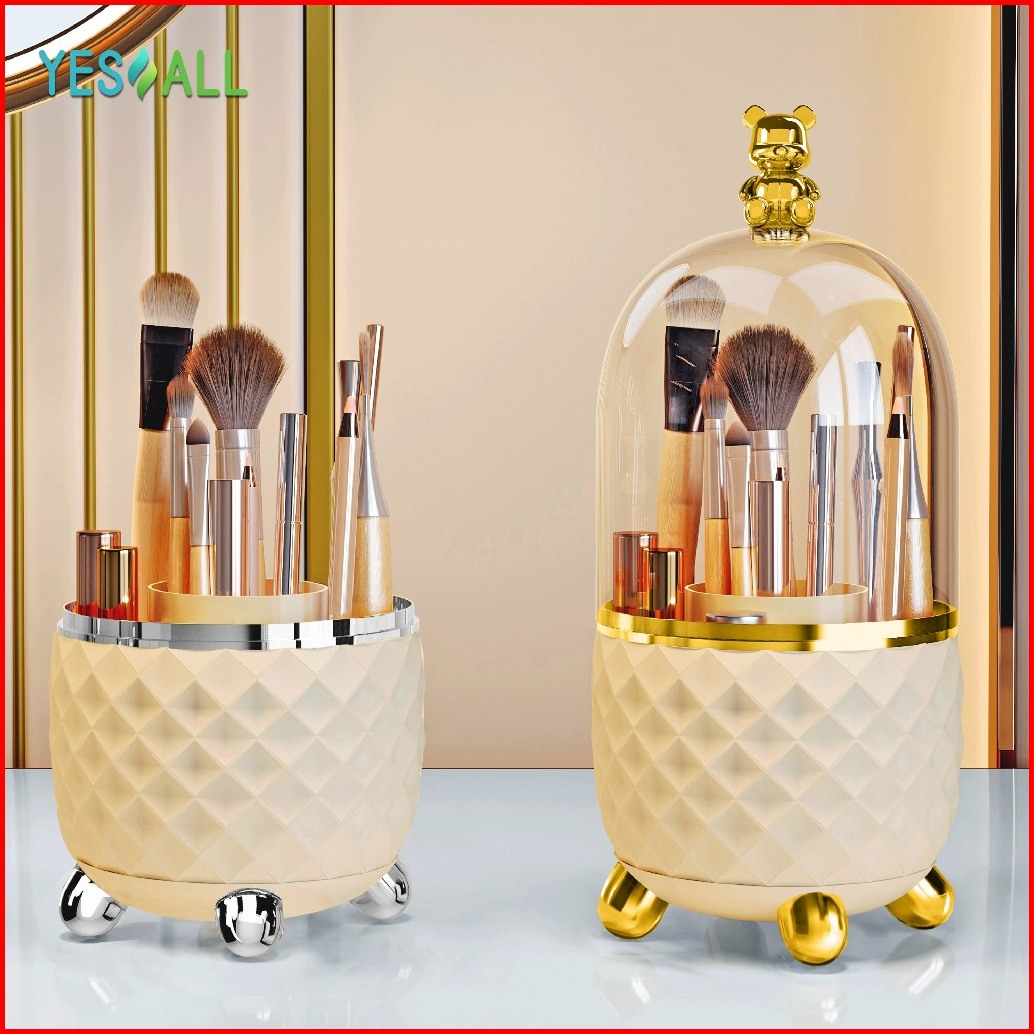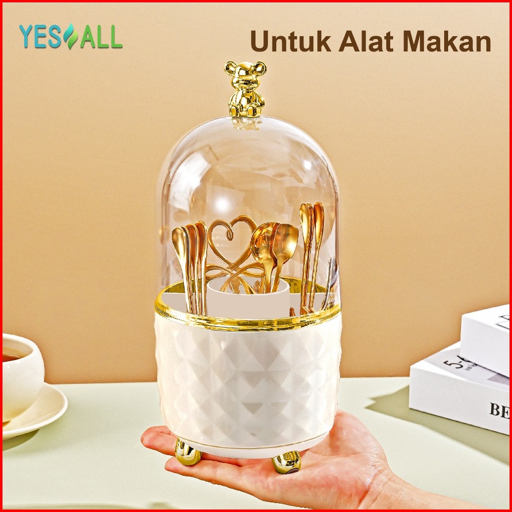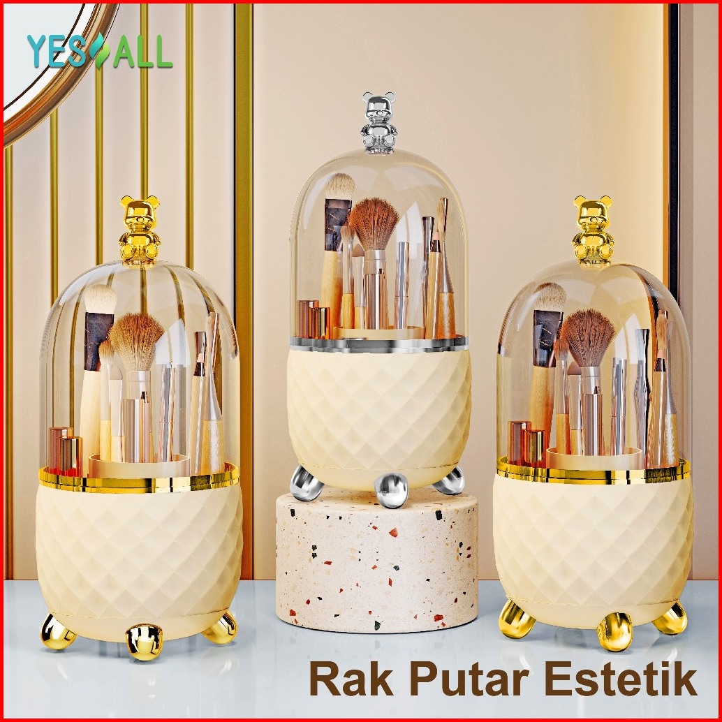 Yesall Kotak Makeup Organizer Beruang Imut - Rak Kosmetik Tempat Kuas Putar 360 Tempat Brush Sendok Alat Tulis Tutup Tra