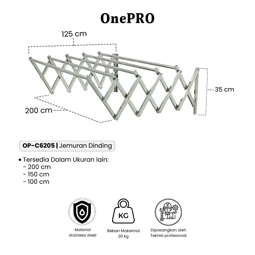 Jemuran Dinding Stainless Lipat Onepro 5 Batang Lipat Gantung Baju