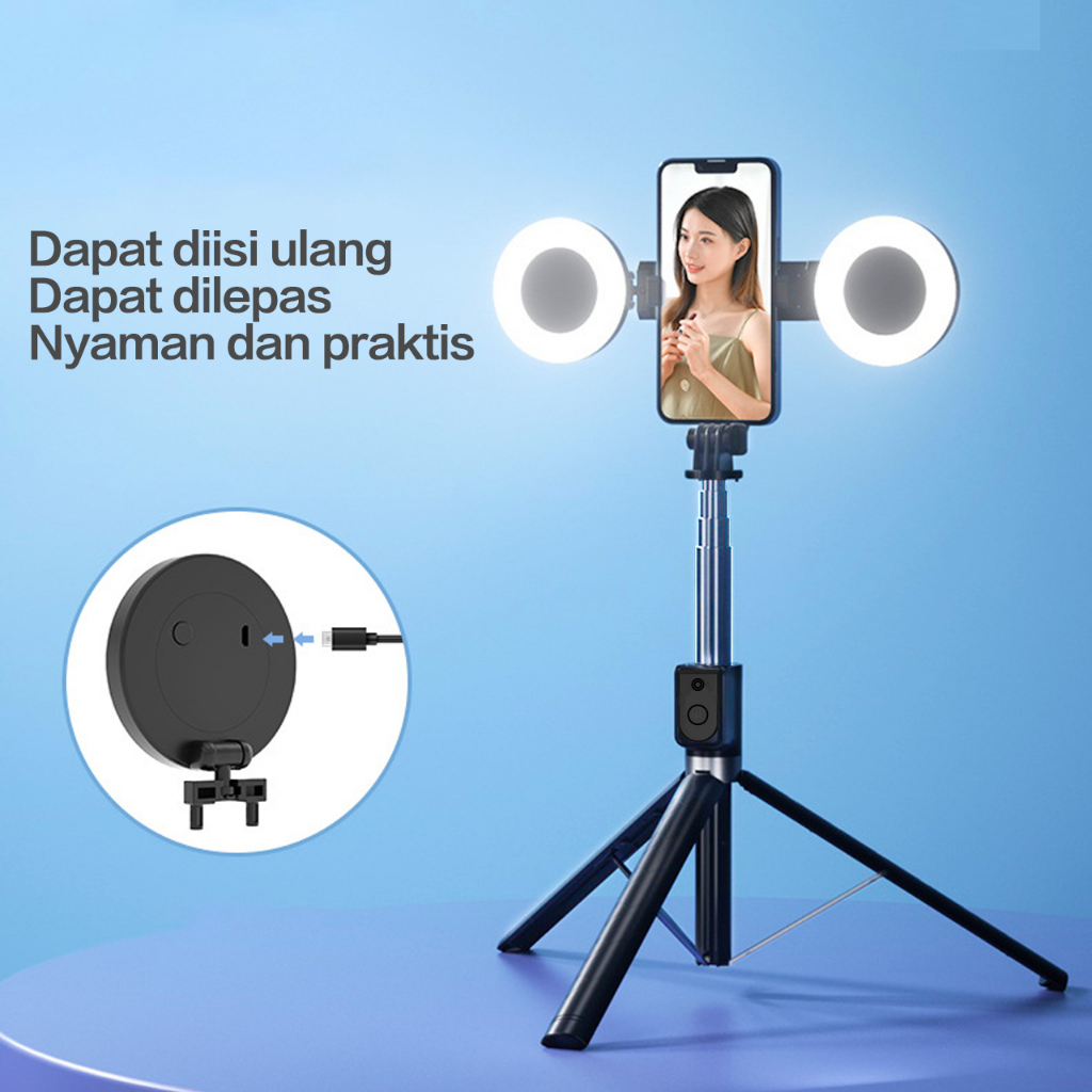 Selfie Stick Tripod Bluetooth Remote 1,7M Dengan Led Panjang Ponsel Handheld Tongsis