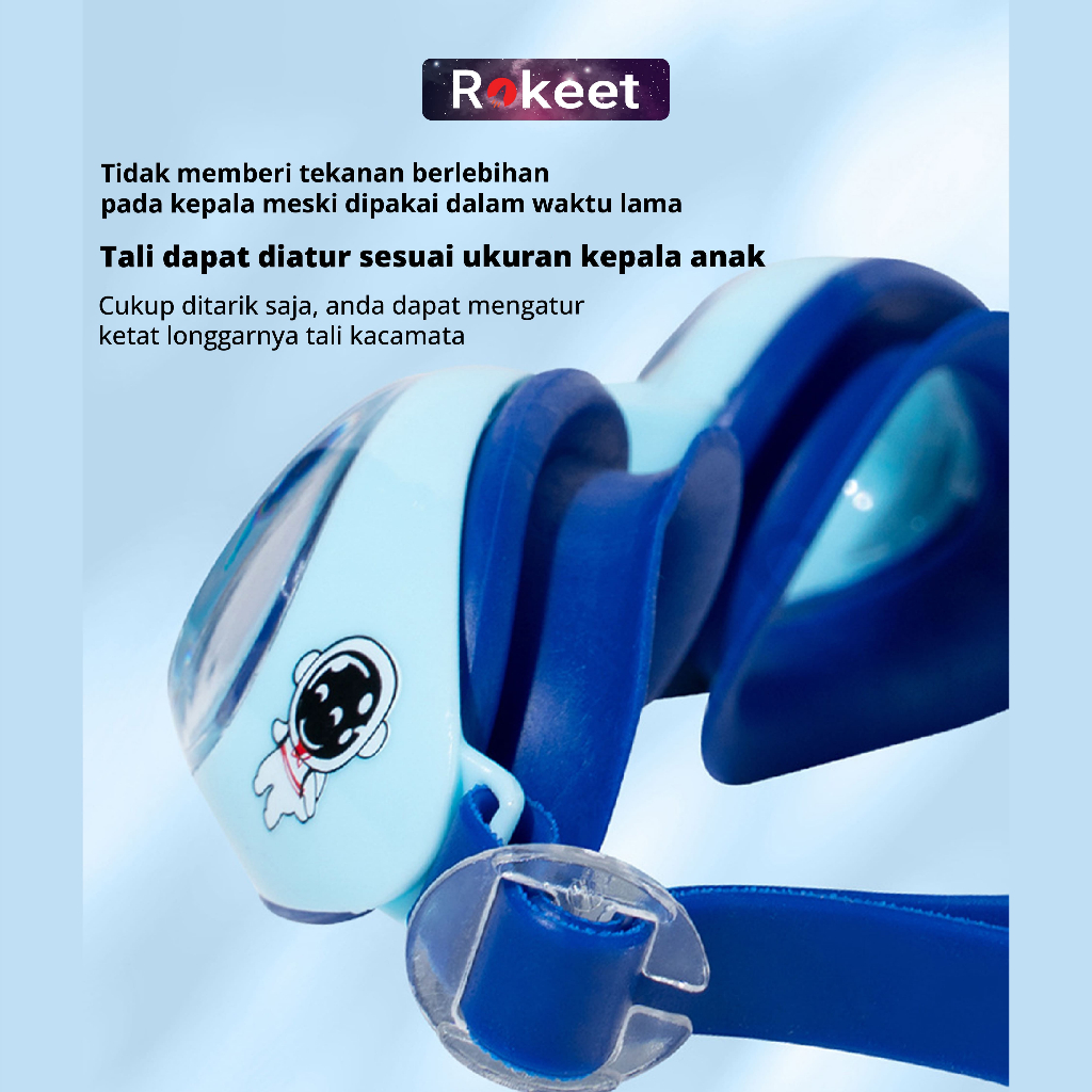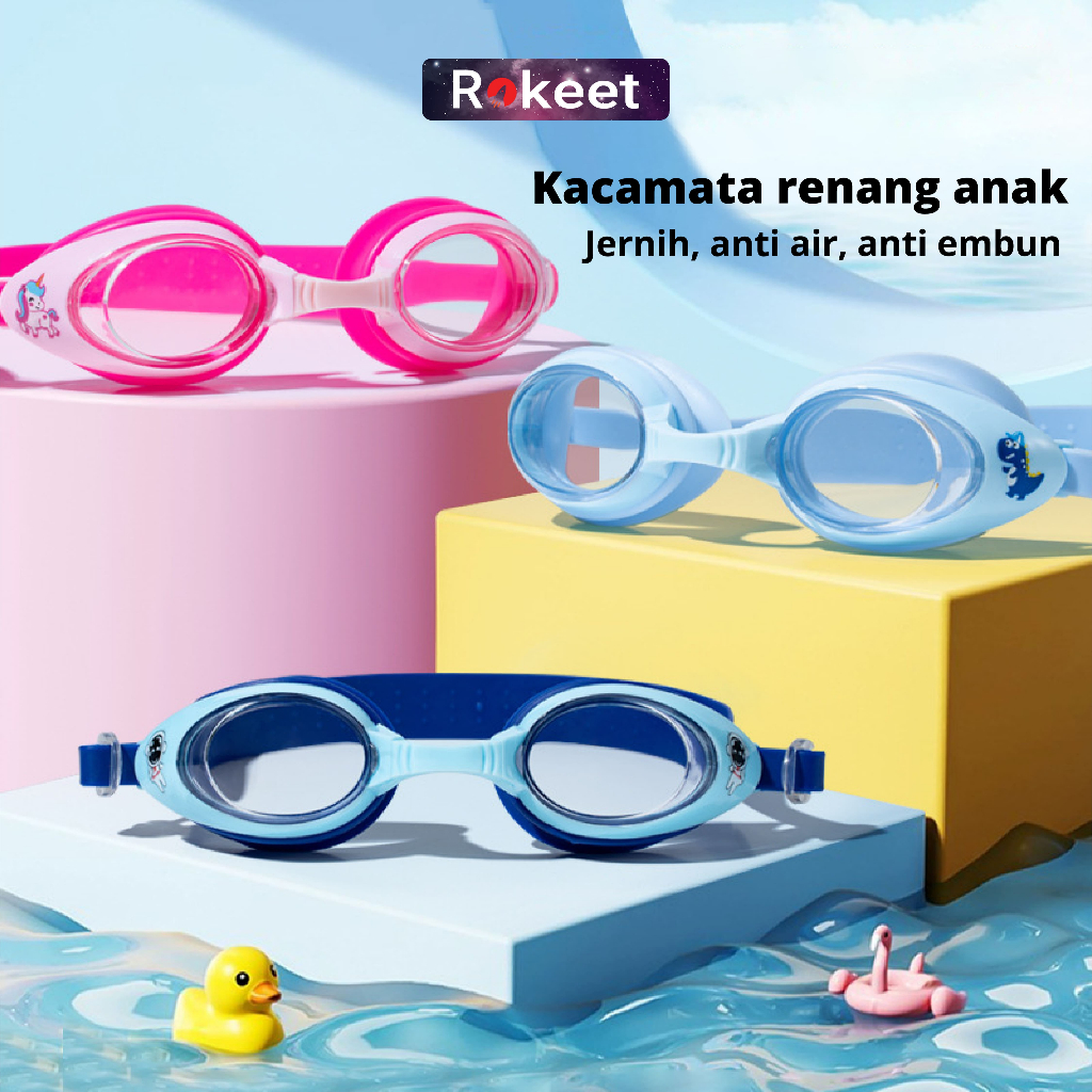 Kacamata Renang Anak Anti Fog Protection Rokeet Adjustable Strap, Free Kotak
