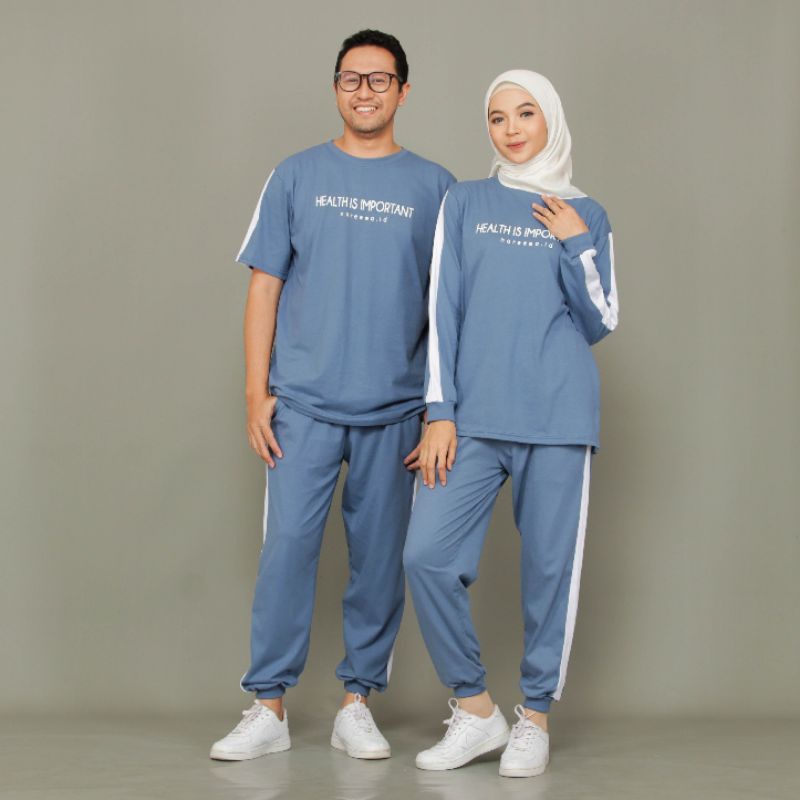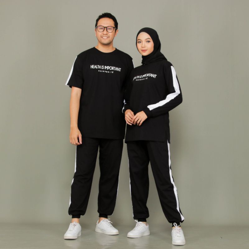 Setelan Baju Olahraga Senam Wanita Dan Pria Jogging Muslim Terbaru Oneset Sport