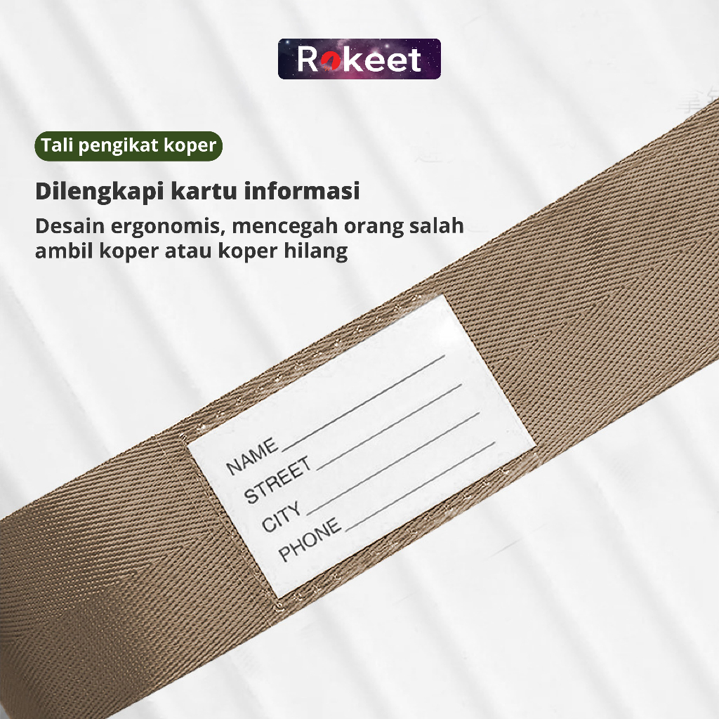 Tali Pengikat Koper Gembok, Pin & Kartu Nama Rokeet Strap Silang 2 Arah