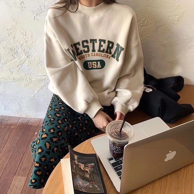 Sweater Crewneck Fleece Western Korean Retro Pria Wanita Trendy