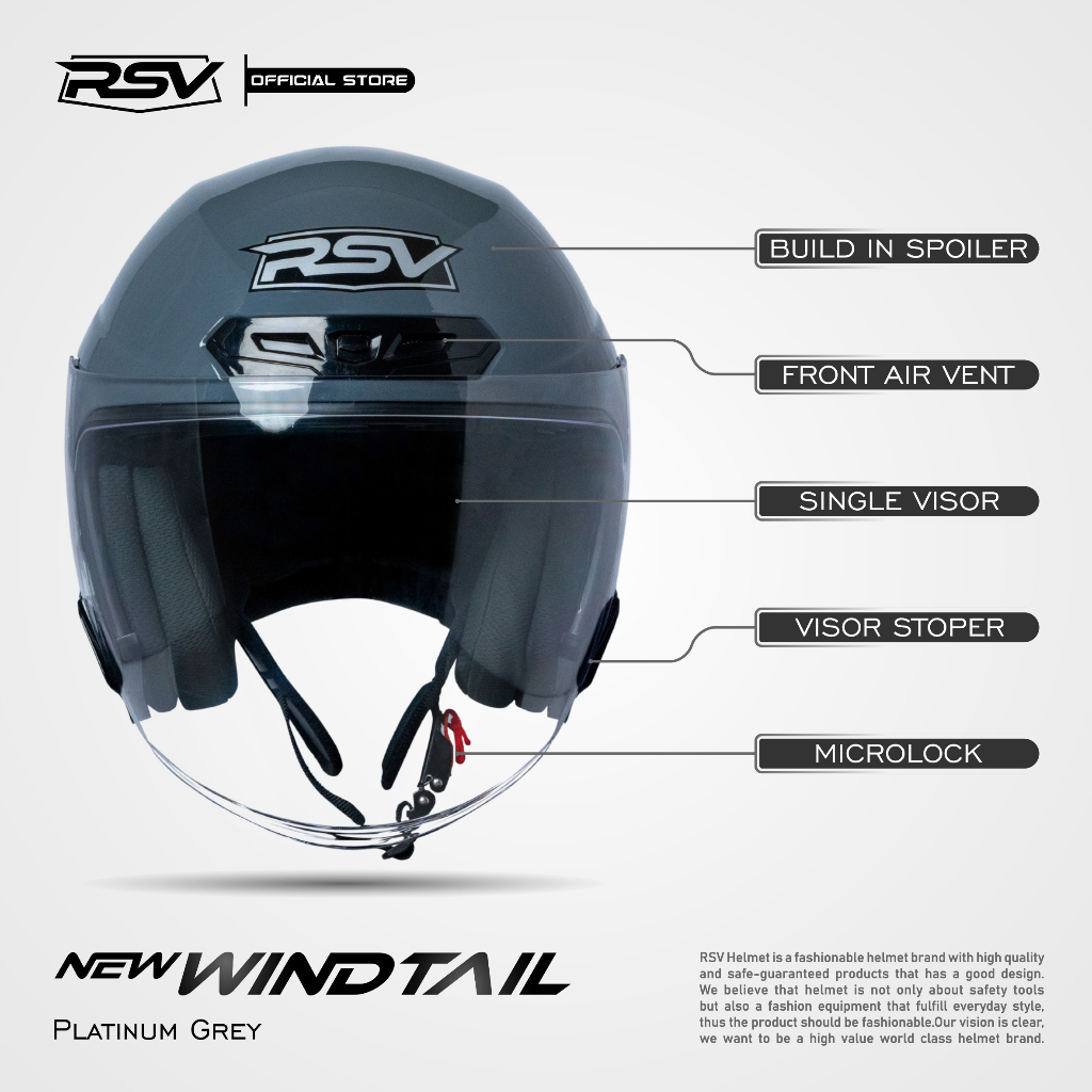 Helm Rsv New Windtail Platinum Grey Glossy Single Visor Half Face Unisex