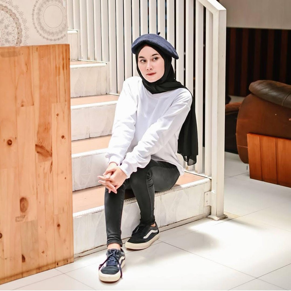 Sweater Crew Neck Oblong Wanita Casual Basic Polos