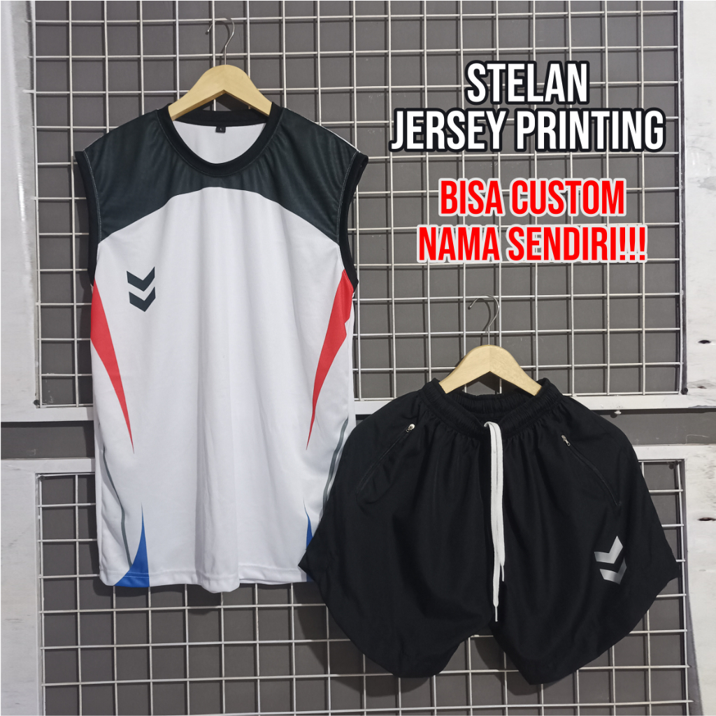 Stelan Baju Kaos Jersey Olahraga Futsal Bola Badminton Printing Singlet Tanpa Lengan Sport Running
