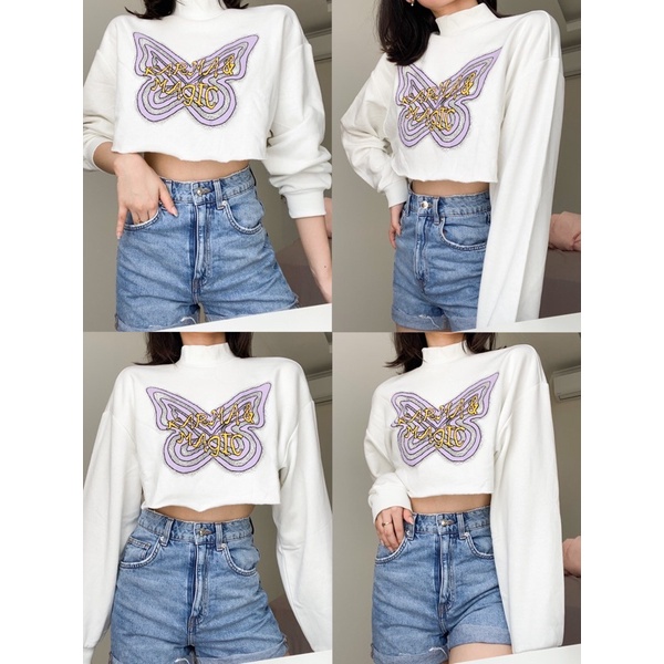 Sweater Karma Magic Broken White Crop Wanita Soft Cream