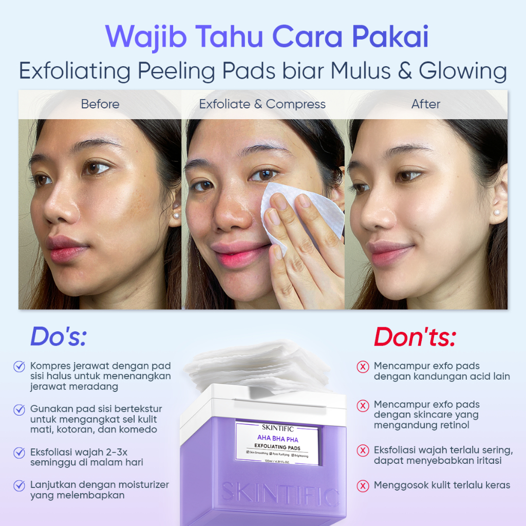 SKINTIFIC AHA BHA PHA Exfoliating Pads | Toner Peeling Wajah Pengangkat Sel Kulit Mati & Komedo | Niacinamide Brightenin