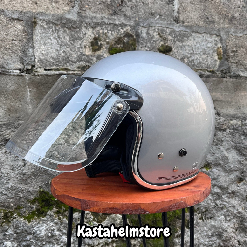 Helm Bogo Retro List Chrome Dewasa Full Leher Pria Wanita Kastahelmstore