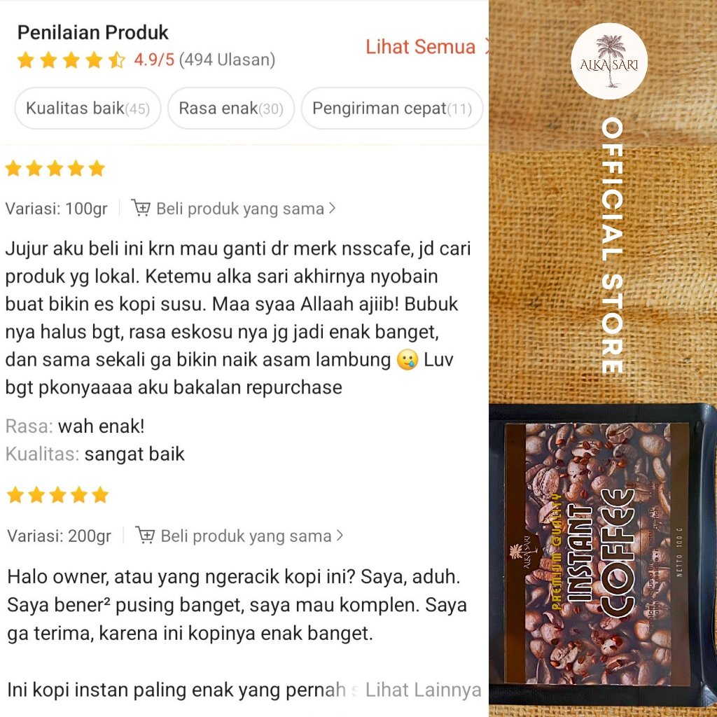 Kopi Instan Bubuk Alka Sari Tanpa Ampas