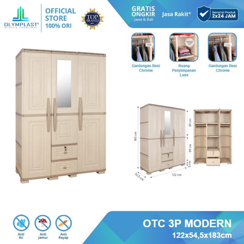 Olymplast OTC 03P Modern / Lemari Plastik 3 Pintu / Lemari Baju / Lemari Pakaian