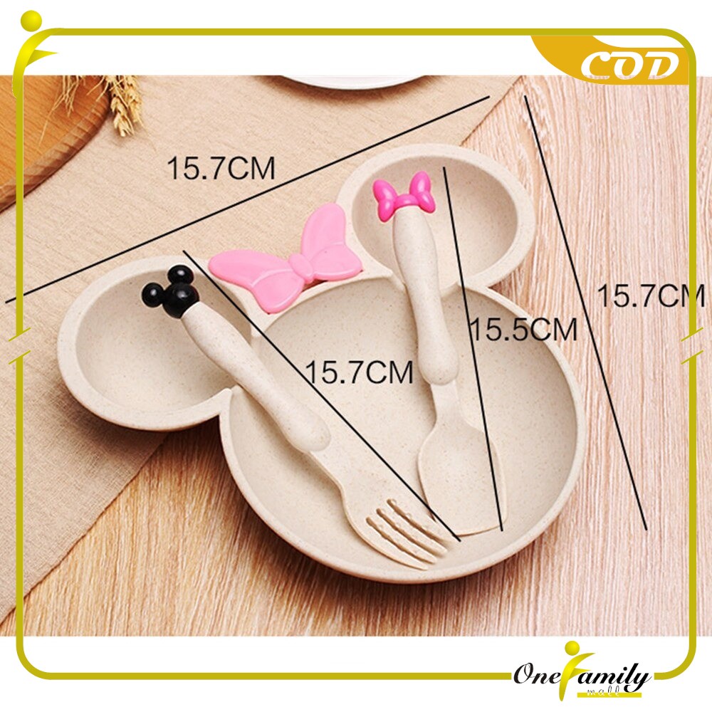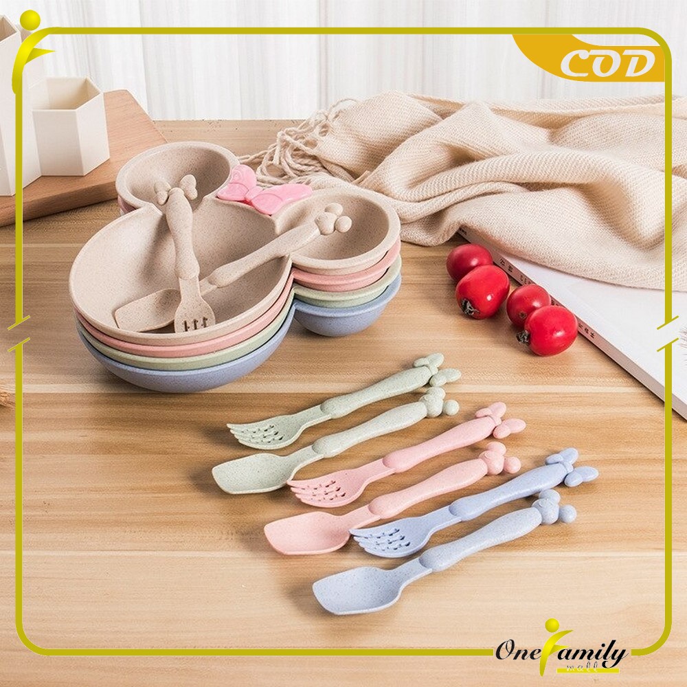 Peralatan Makan Anak Miki Set Sendok Garpu Mangkok Wheat Straw
