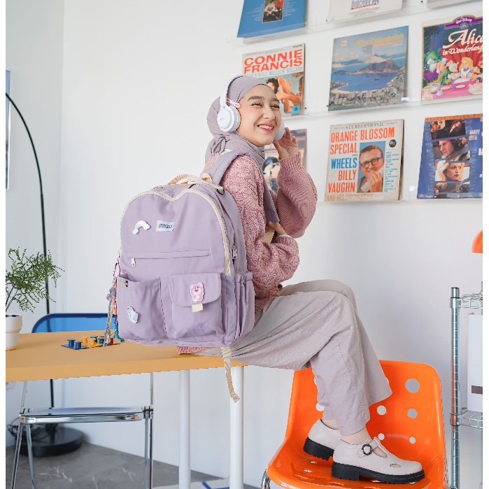 Tas Ransel Wanita Himeku Kiyo Backpack Kanvas Besar Kuliah Kerja