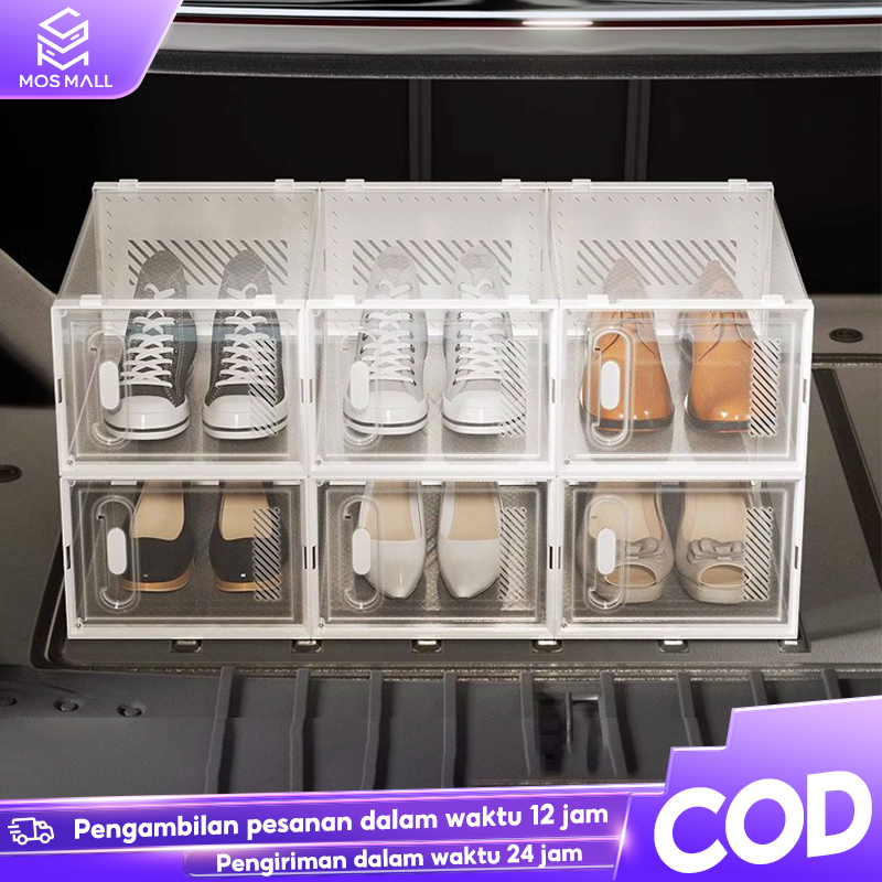 Rak Sepatu Susun Tertutup Rak Aesthetic Multifungsi Kotak Penyimpanan Sepatu