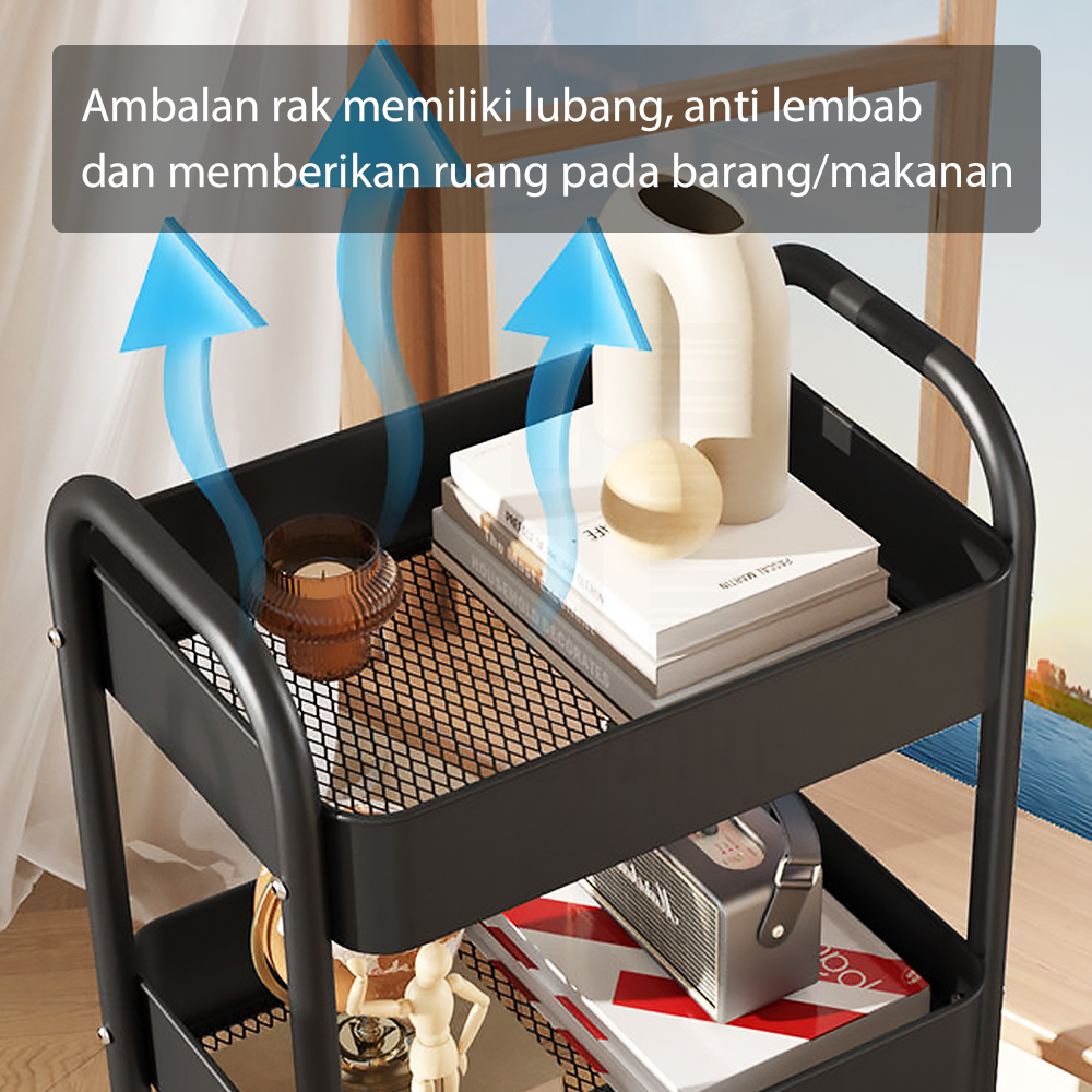 Rak Troli Susun Besi Hugo Stainless Steel Bertingkat Dorong Serbaguna Kamar Mandi