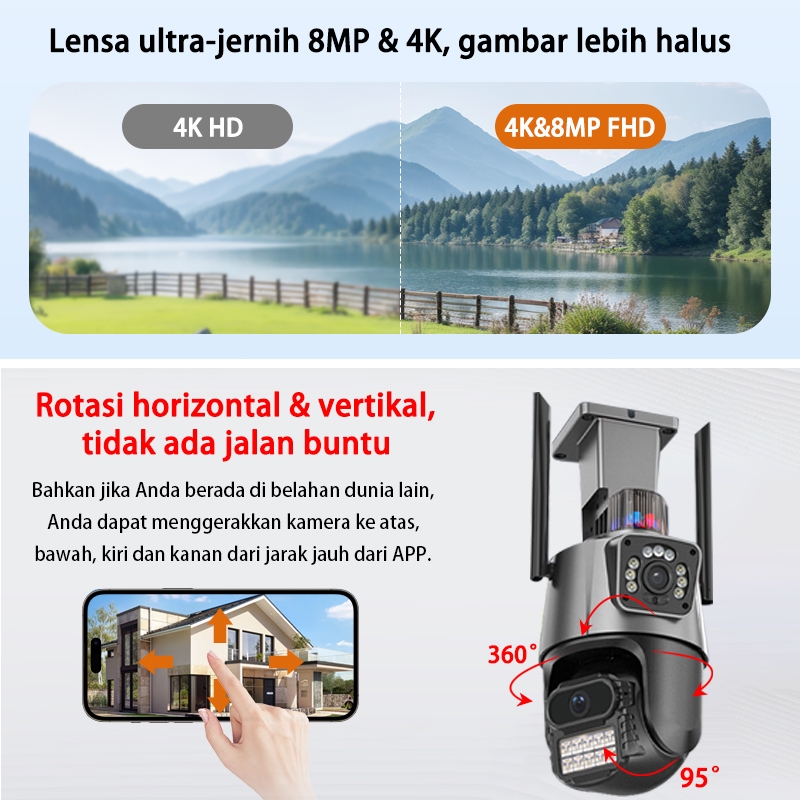 AE 8PM 4k HD CCTV Outdoor Wifi Dual Lens Dual Screen Auto Tracking Outdoor Camera CCTV IP66 Tahan Air