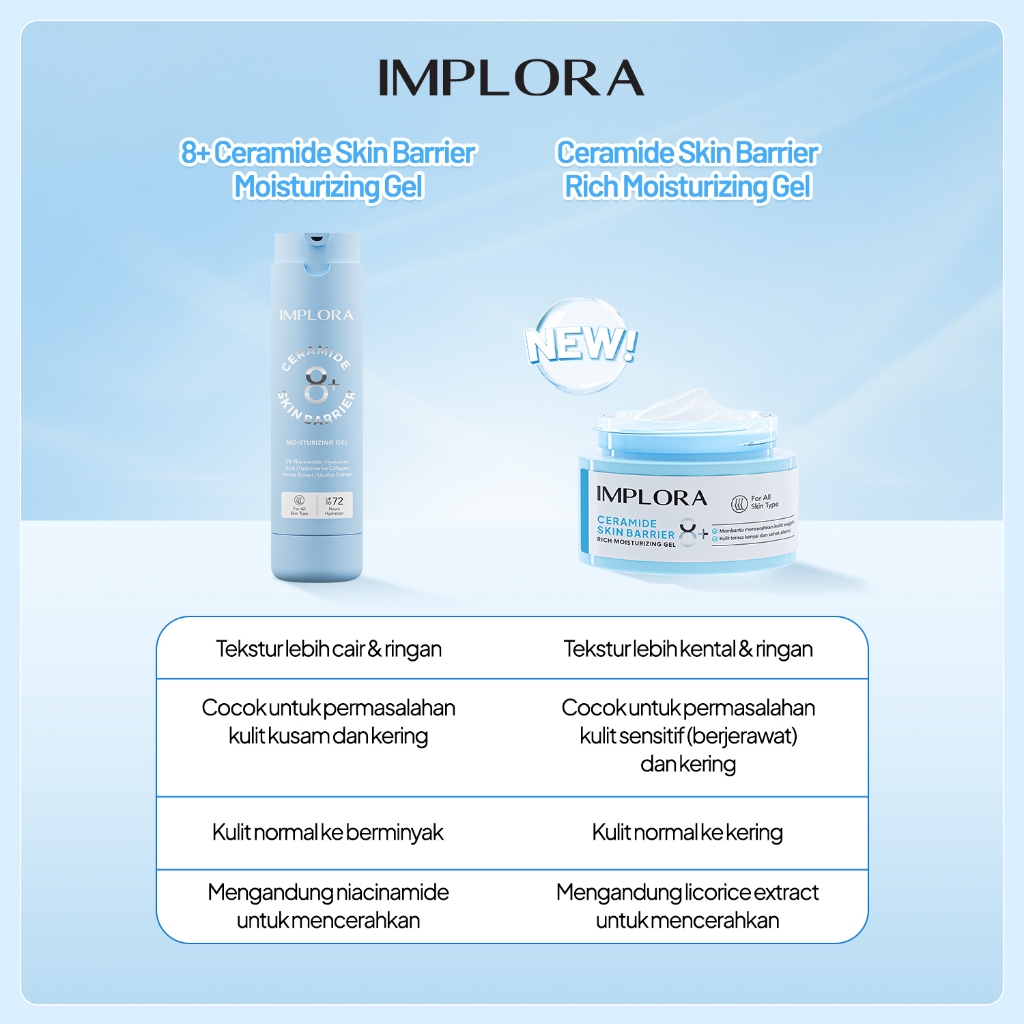 MOISTURIZER Implora 8+ Ceramide Skin Barrier Moisturizing Gel | Pelembab Kulit Kering, Kombinasi, ne Prone | Moisturizer