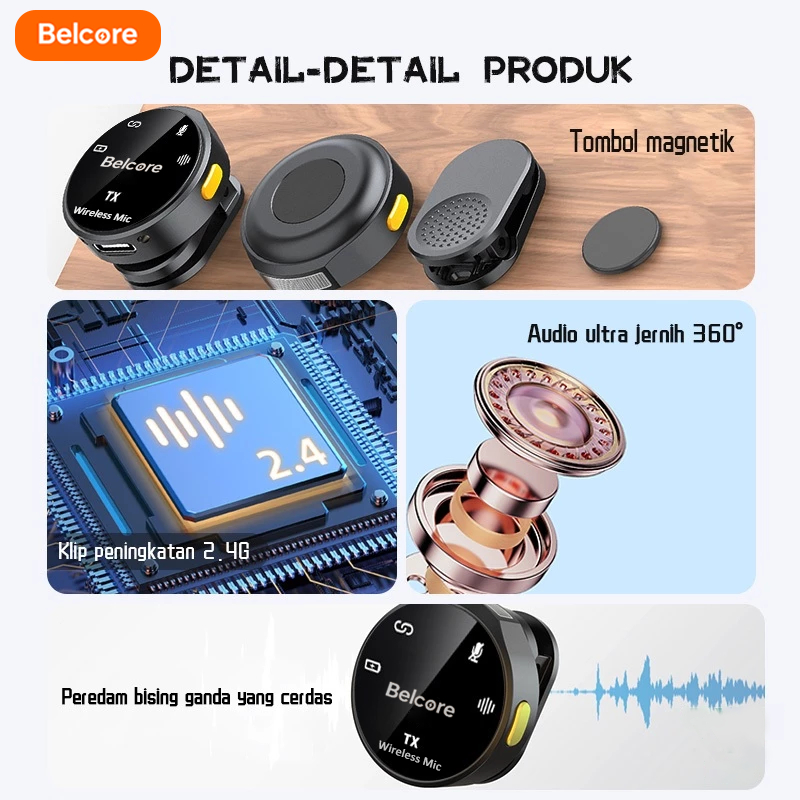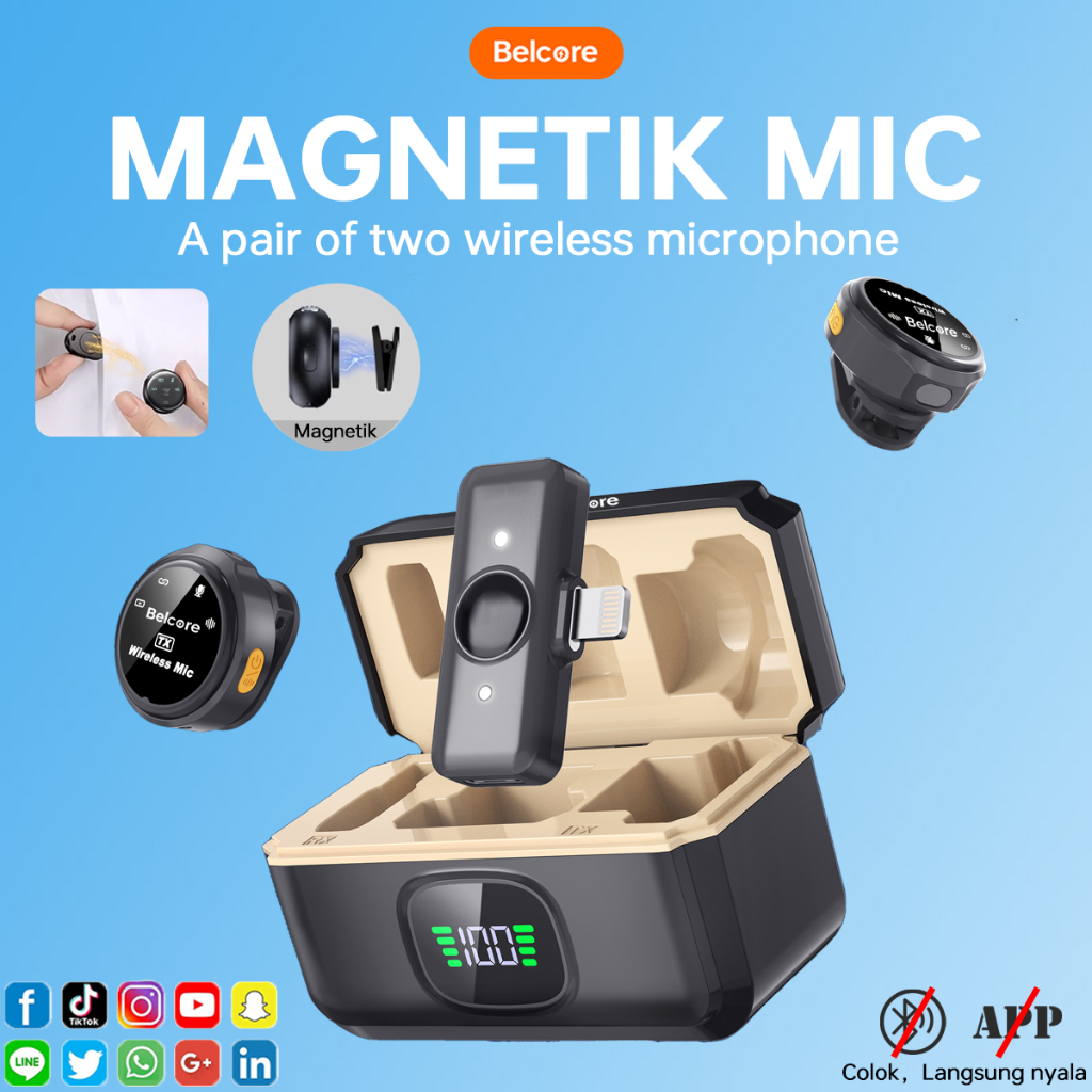 BELCORE D80 MAGNETIC WIRELESS CLIP ON MICROPHONE DUAL LAVALIER HP PLUG & PLAY LAPEL MIC WITH CHARGING CASE MIKROFON FOR