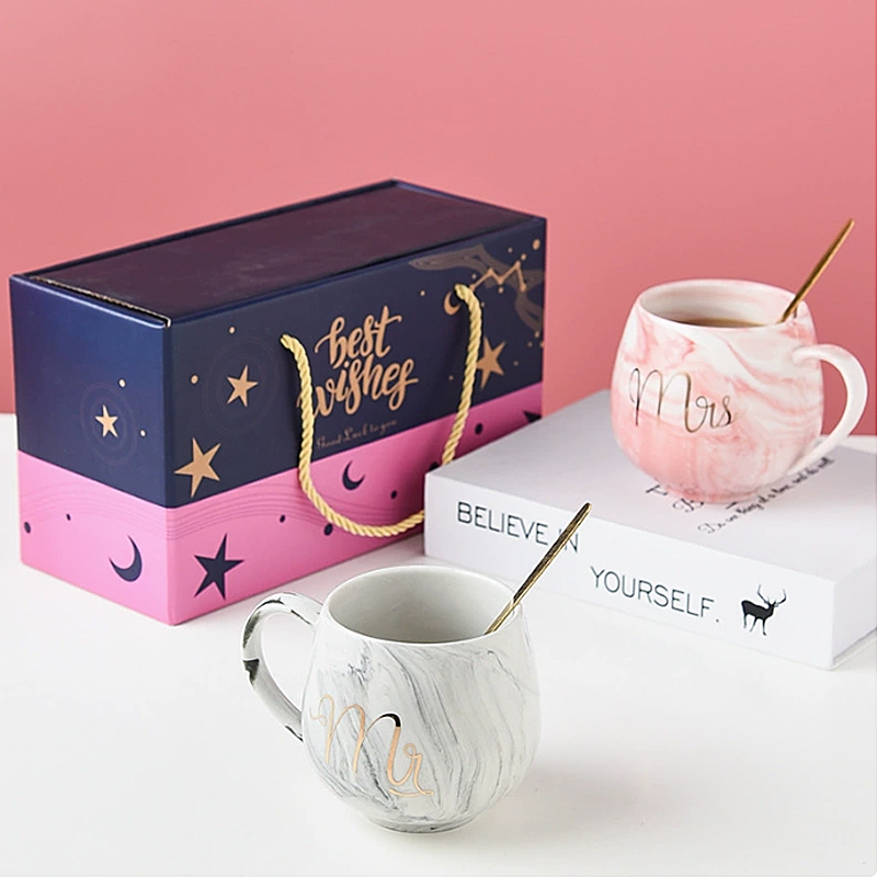 Gelas Keramik Couple Set Hadiah Eropa Utara Kopi Mug Pernikahan Mangkok Keramik