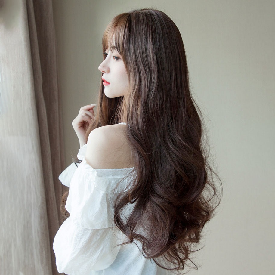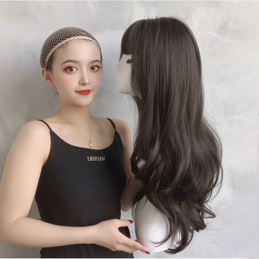 Wig Rambut Panjang Curly Bergelombang Poni Panjang 70 Cm Gelombang Besar Alami Keriting Panjang