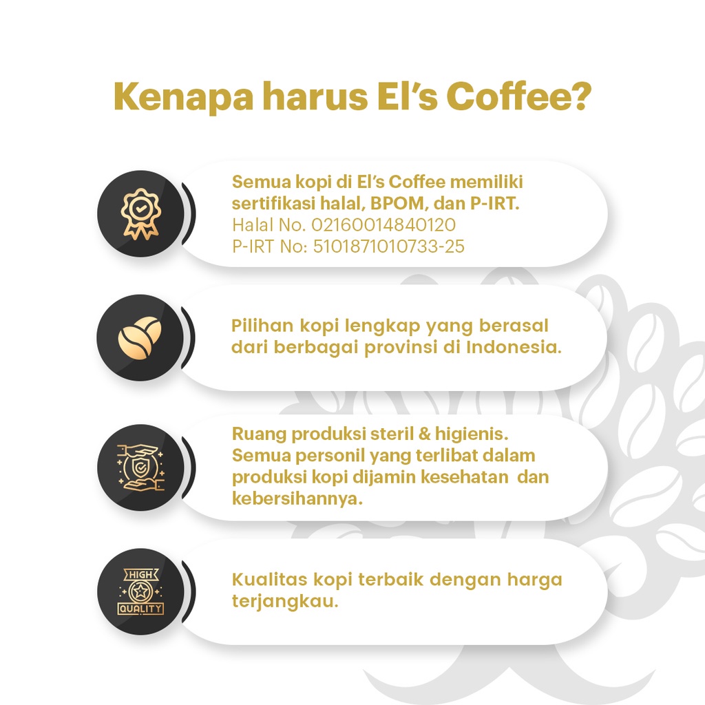 Kopi Robusta Lampung El'S Coffee 500Gr Pure Indonesia Coffee Beans Fine Course Roasted
