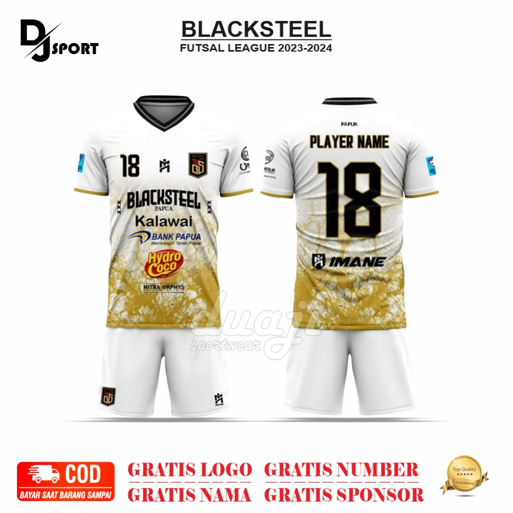 Jersey Bola Futsal Blacksteel Away 2023-2024 Full Printing Premium Gratis Pasang Nama Size Anak & D3W4SA
