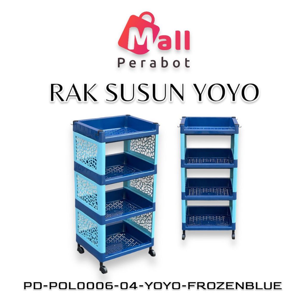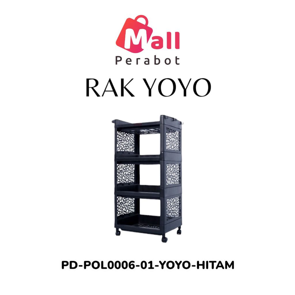 Rak Susun Yoyo Hitam 4 Tingkat Roda Portable Rak Dapur Trolley Plastik