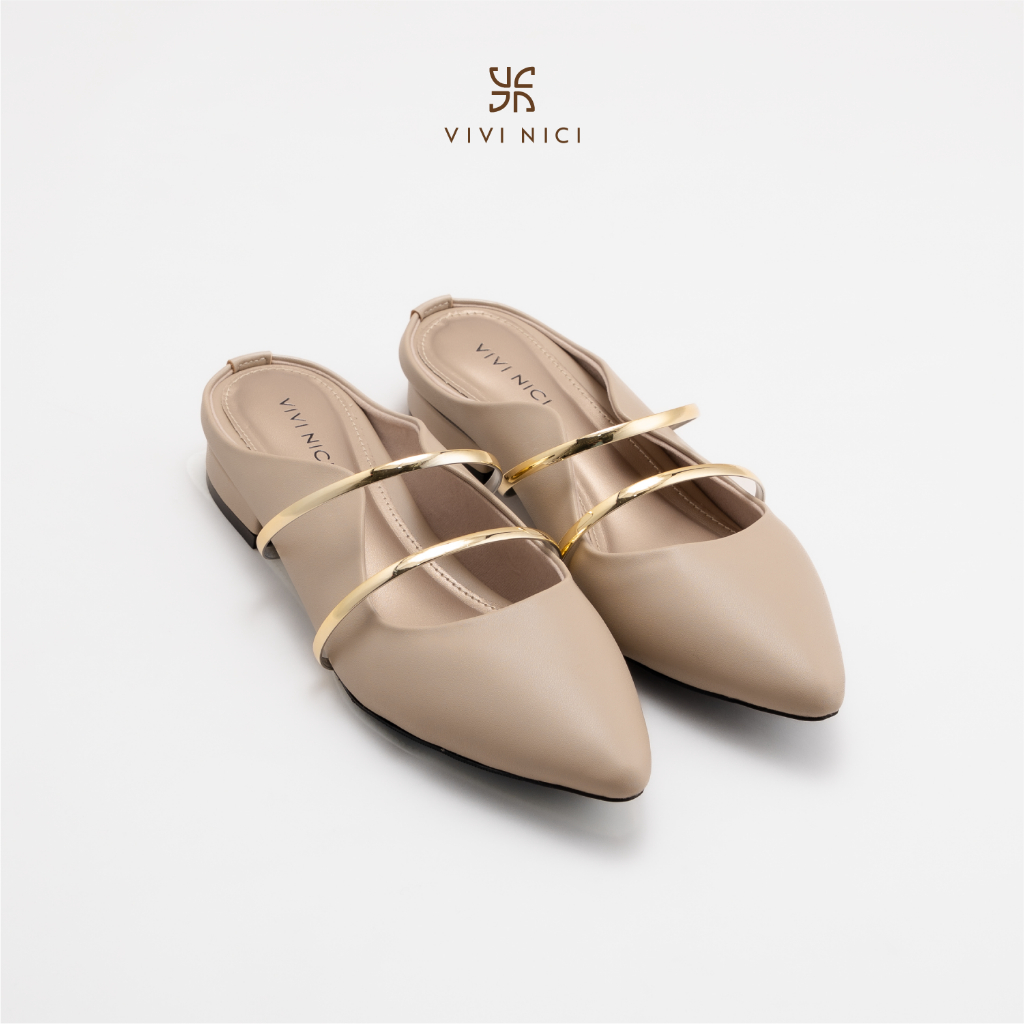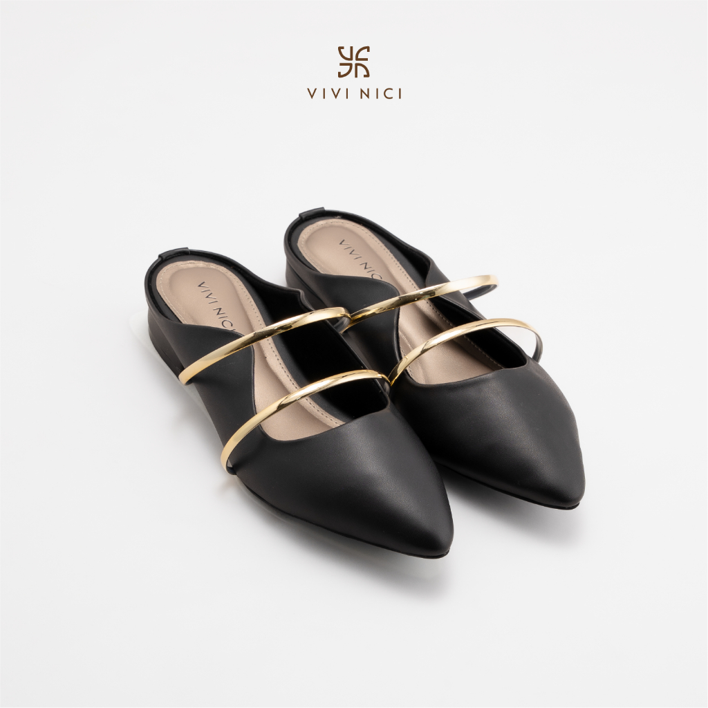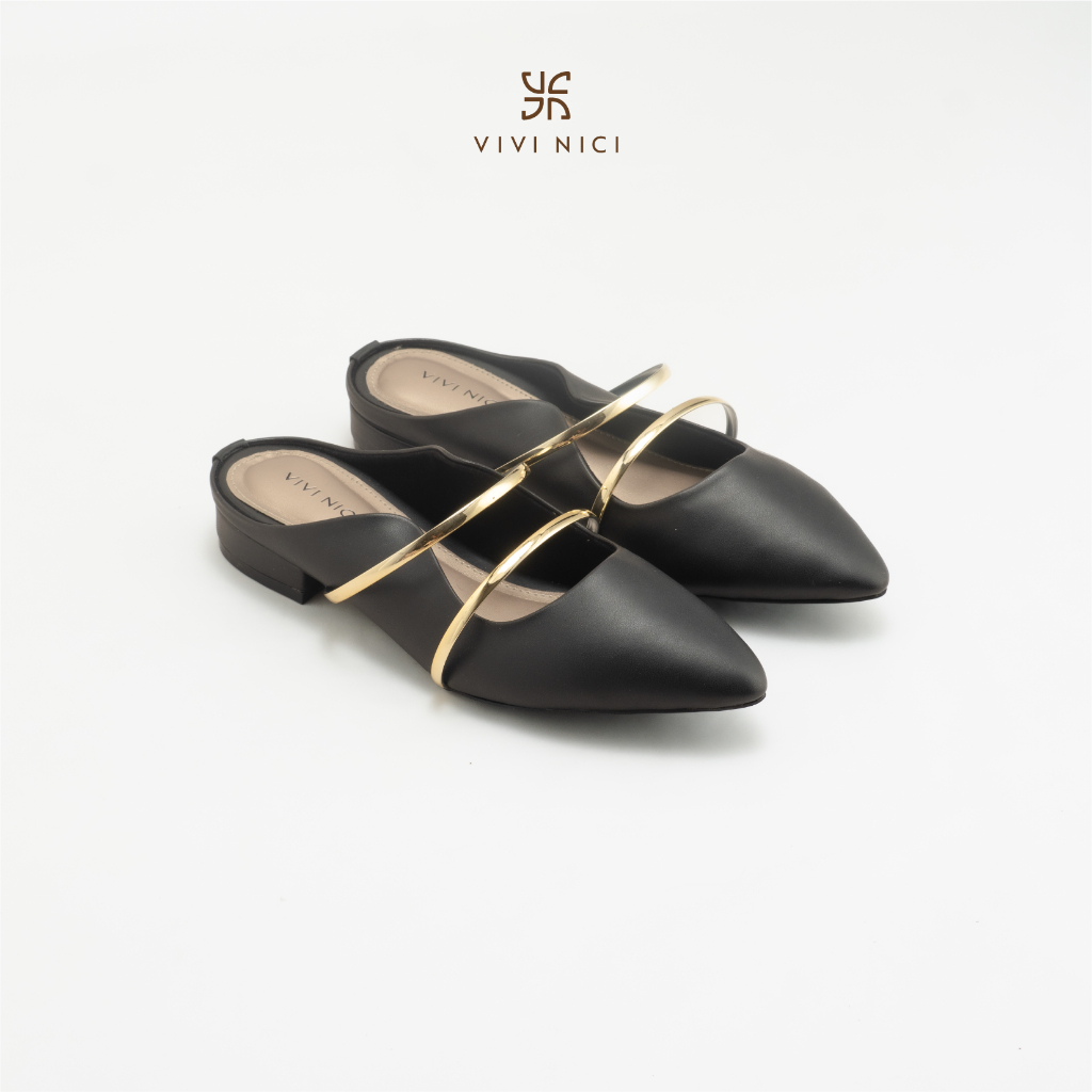 Simple Flat Sandal heels Terbaru Kondangan VIVI NICI - Chava Sandal Mules Wanita Hak 2 Cm Sepatu Kantor Kerja Kampus