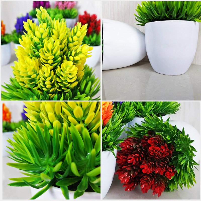 Tanaman Hias Plastik Pot Bonsai Mini Bunga Artificial Sintetis Ornamen Dekorasi Rumah