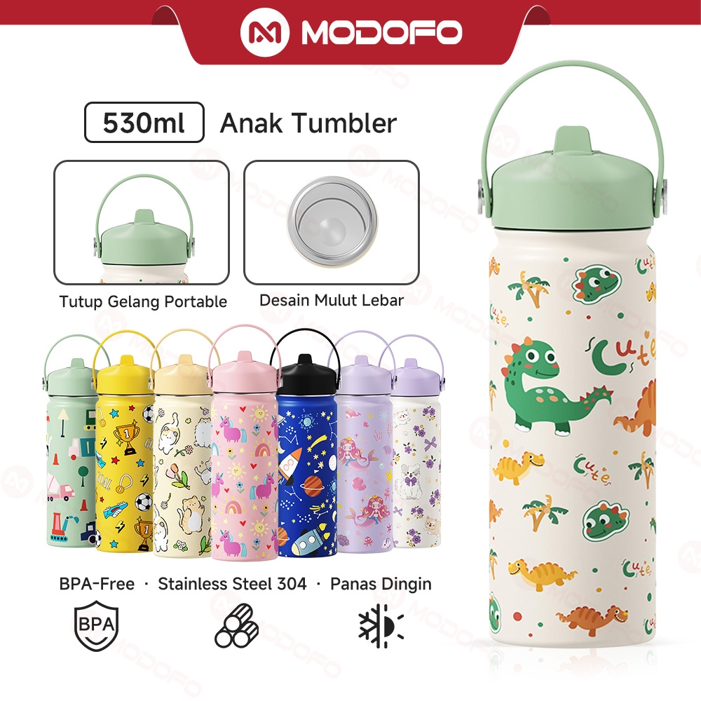 MODOFO Botol Minum Anak Laki Laki Perempuan Aesthetic 550ml Tumbler Tahan Panas Dingin 24 Jam Stainless BPA Free
