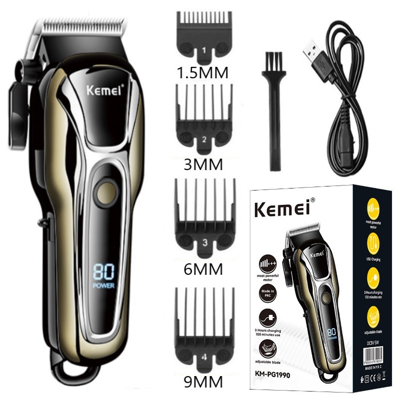 Kemei Alat cukur rambut elektrik Mesin Cukur Rambut Tanpa Kabel Turbo Hair Clipper KM-PG1990A