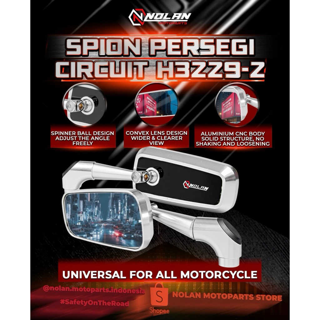 NOLAN Spion Persegi Circuit H3229-2 Kaca Putih Bahan Full Aluminium Alloy Universal Motor