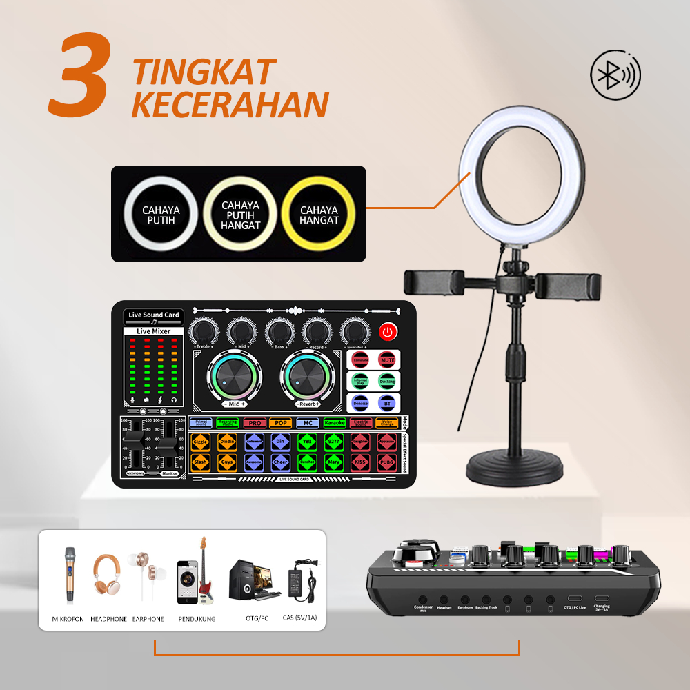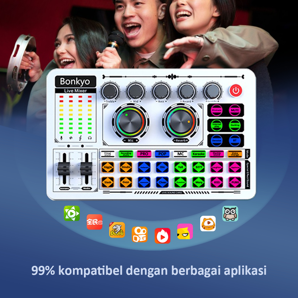 BONKYO F999 SOUND CARD BERNYANYI MEREKAM PERALATAN PROFESIONAL SIARAN LANGSUNG DENGAN LAMPU PENGISI SIARAN LANGSUNG
