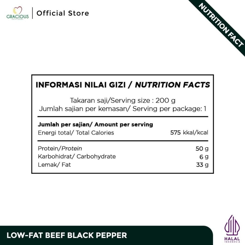 Makanan Instant Sehat Siap Saji Gracious Lowfat Beef Black Pepper Protein 50Gr