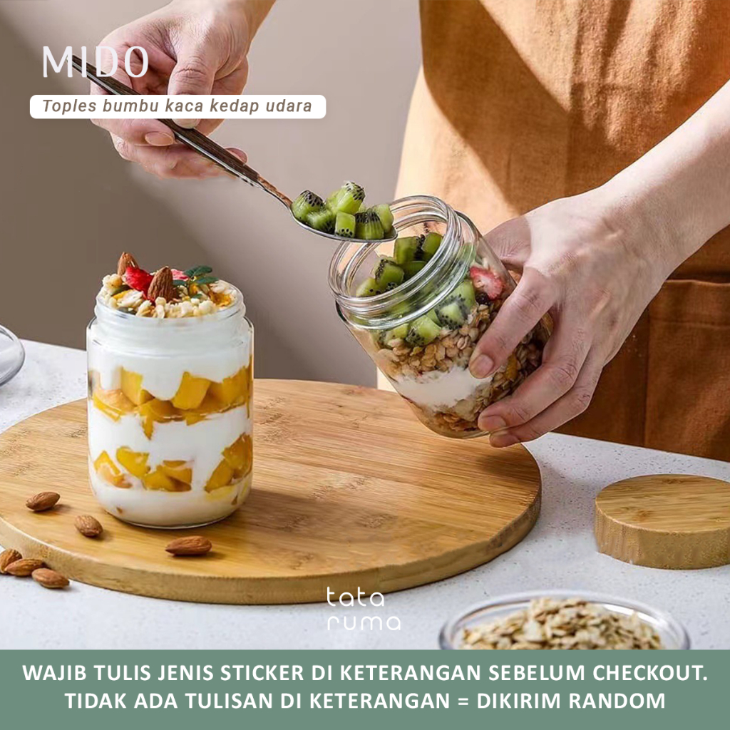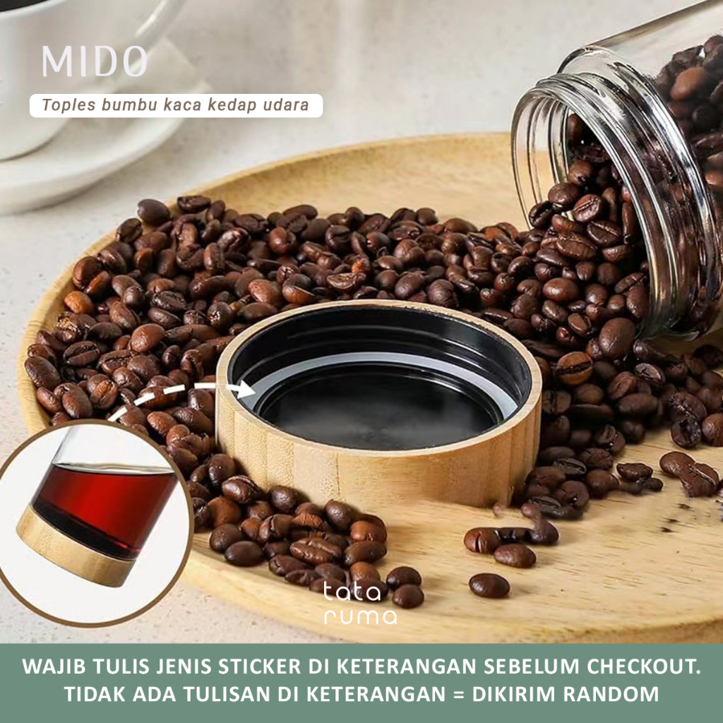 Toples Tataruma Mido Kaca Tutup Bambu Wadah Rempah Gula Kopi Teh Mini Bamboo Jar