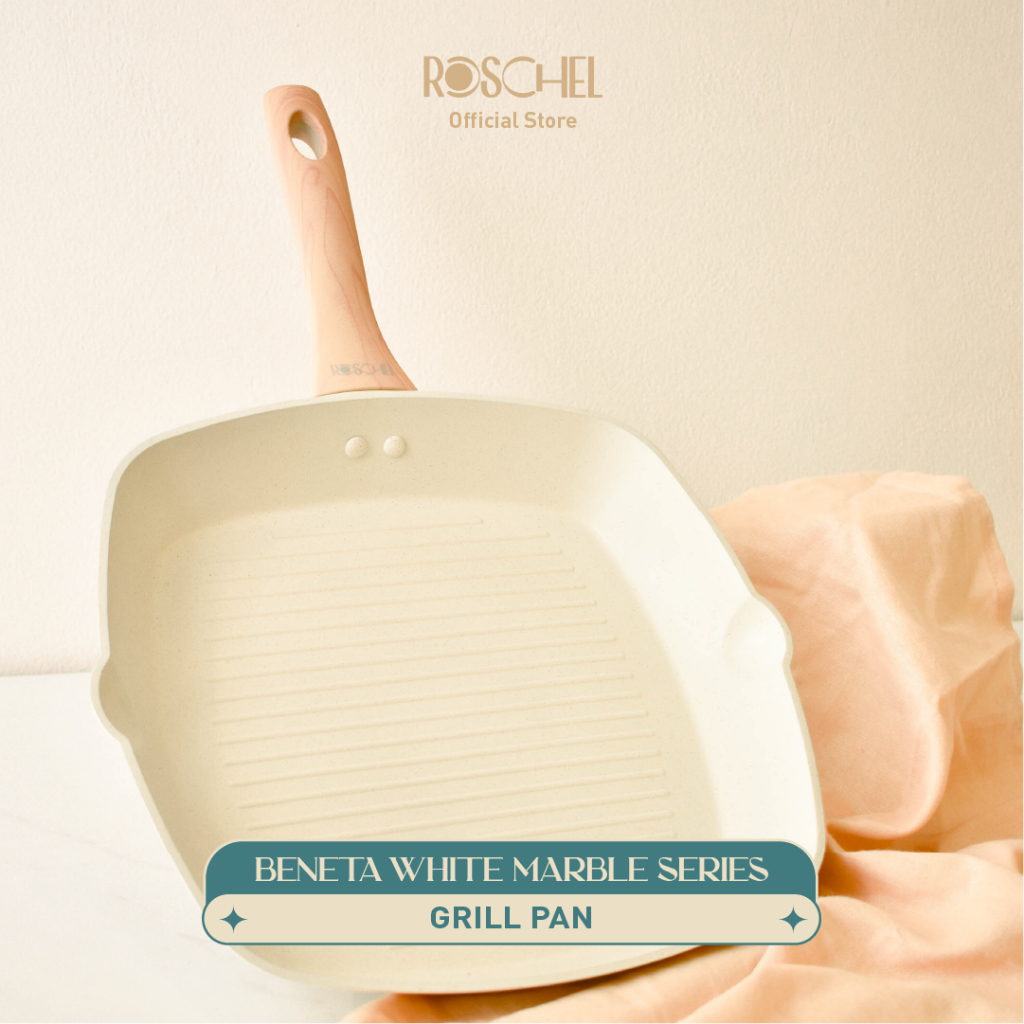 Grill Pan Roschel Beneta White Marble Coating 24 28 Cm Nonstick Wajan Penggorengan Fry Pan Anti Lengket